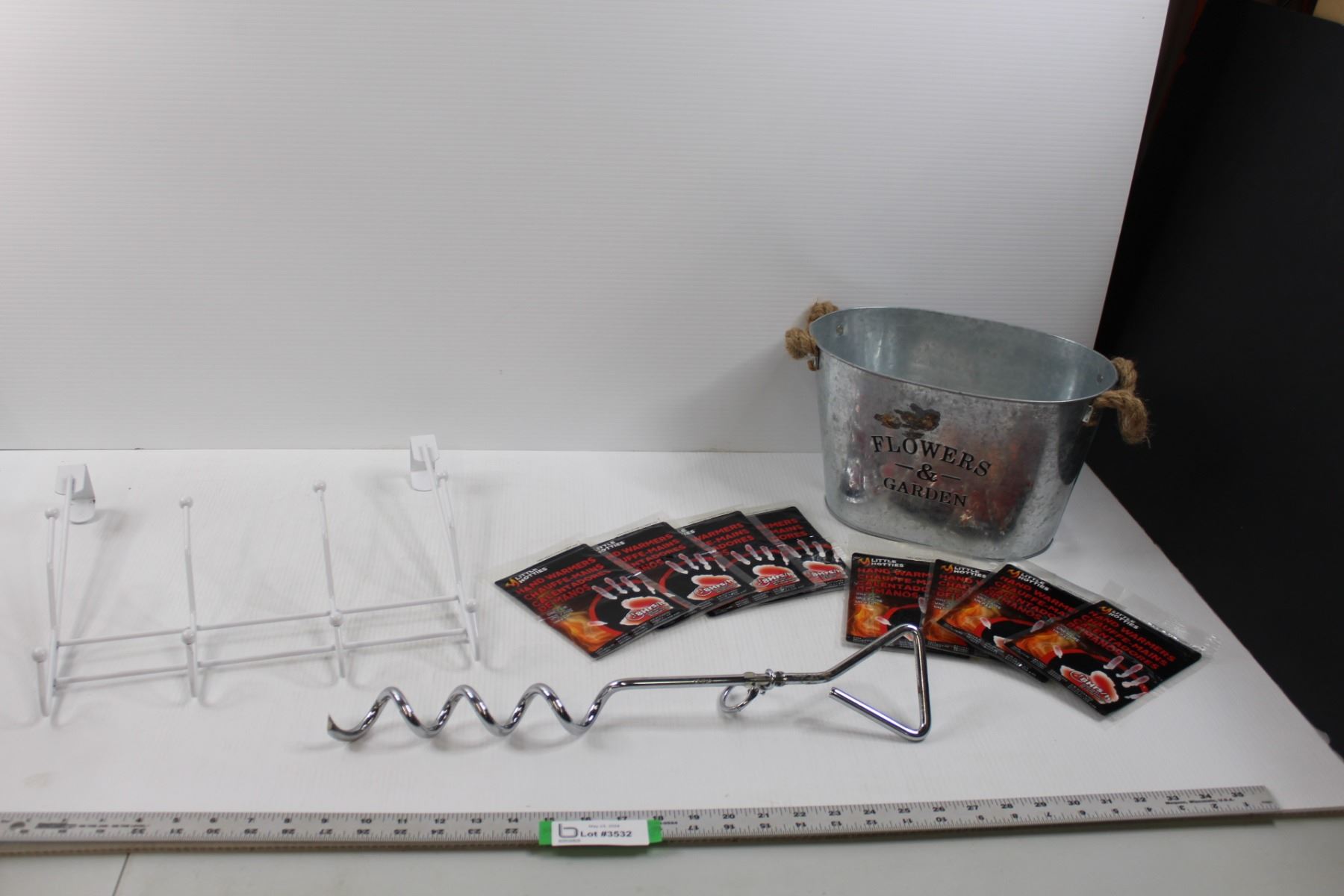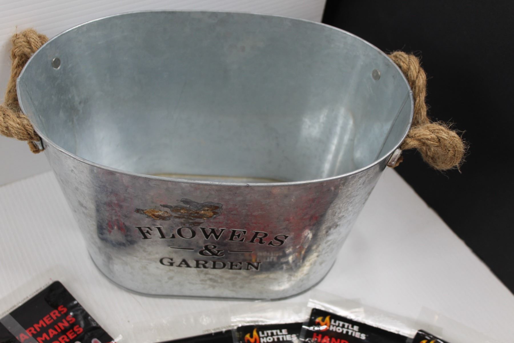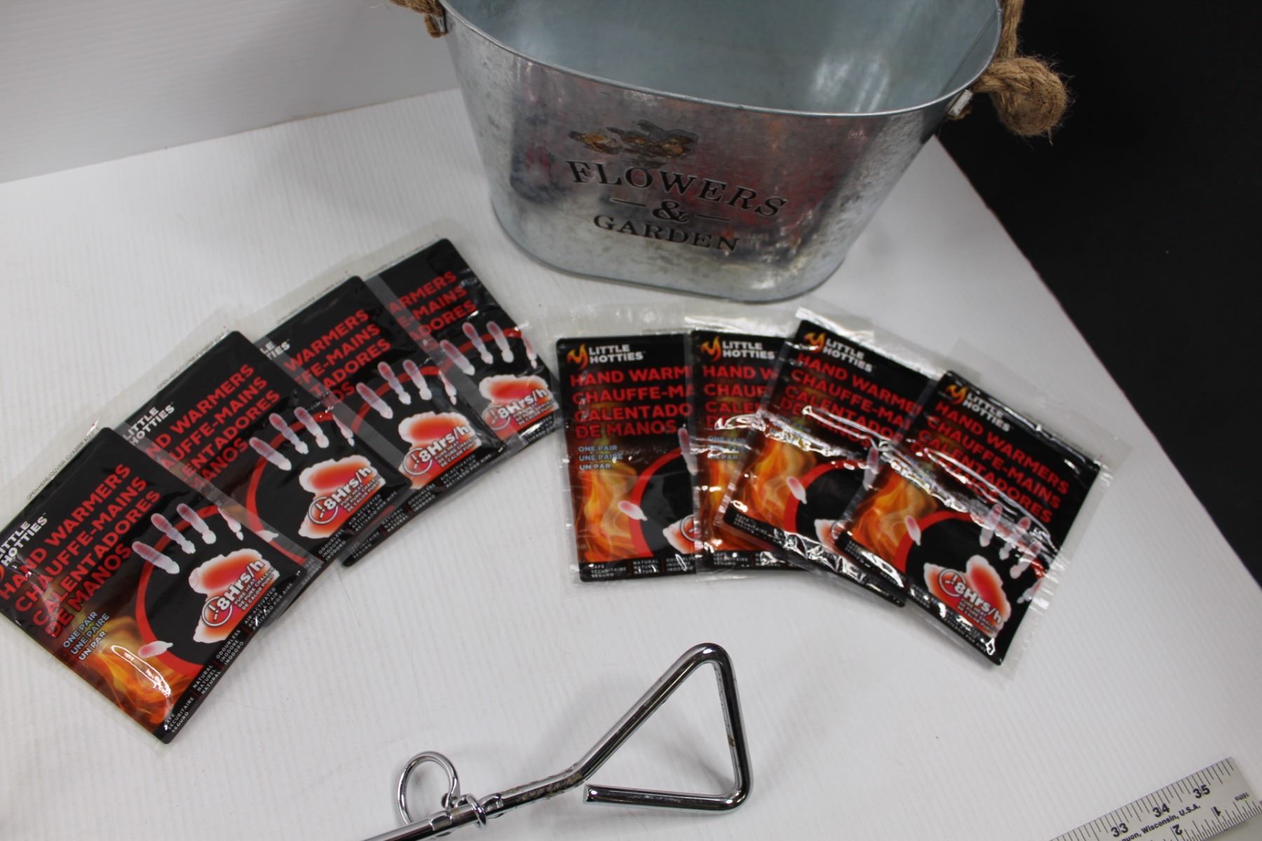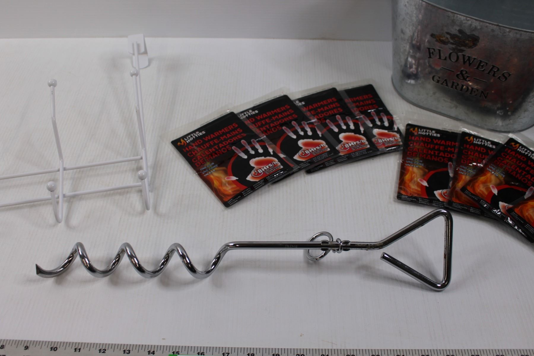 (8- 2 pks) Little Hotties Hand Warmers, "Flowers & Garden" Galvanized Tin Tub, Door Mounted Hanging Unit & Screw in Pet Tie Post