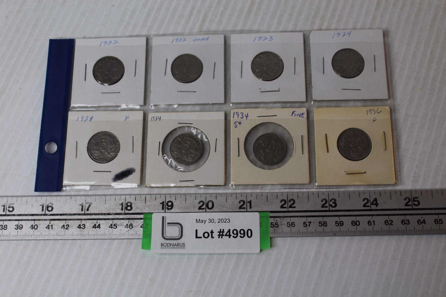 (8) 5 Cent Coins (22 - 23 - 24 - 17 - 28 - 34 - 36)