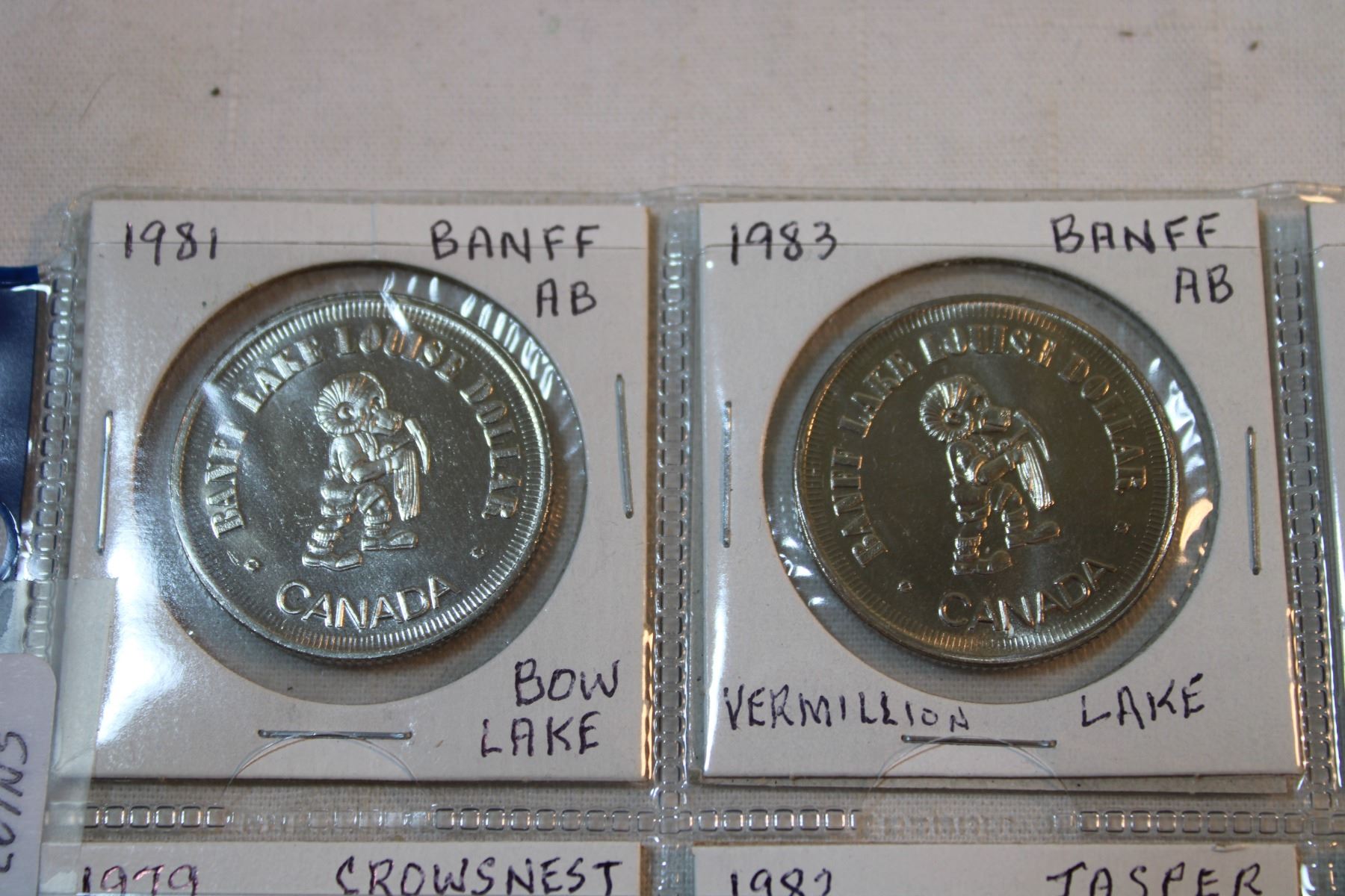 (8) Alberta Souvenir Coins (1966 & 1976 Calgary Stampede Dollar, Jasper Dollars Etc.)
