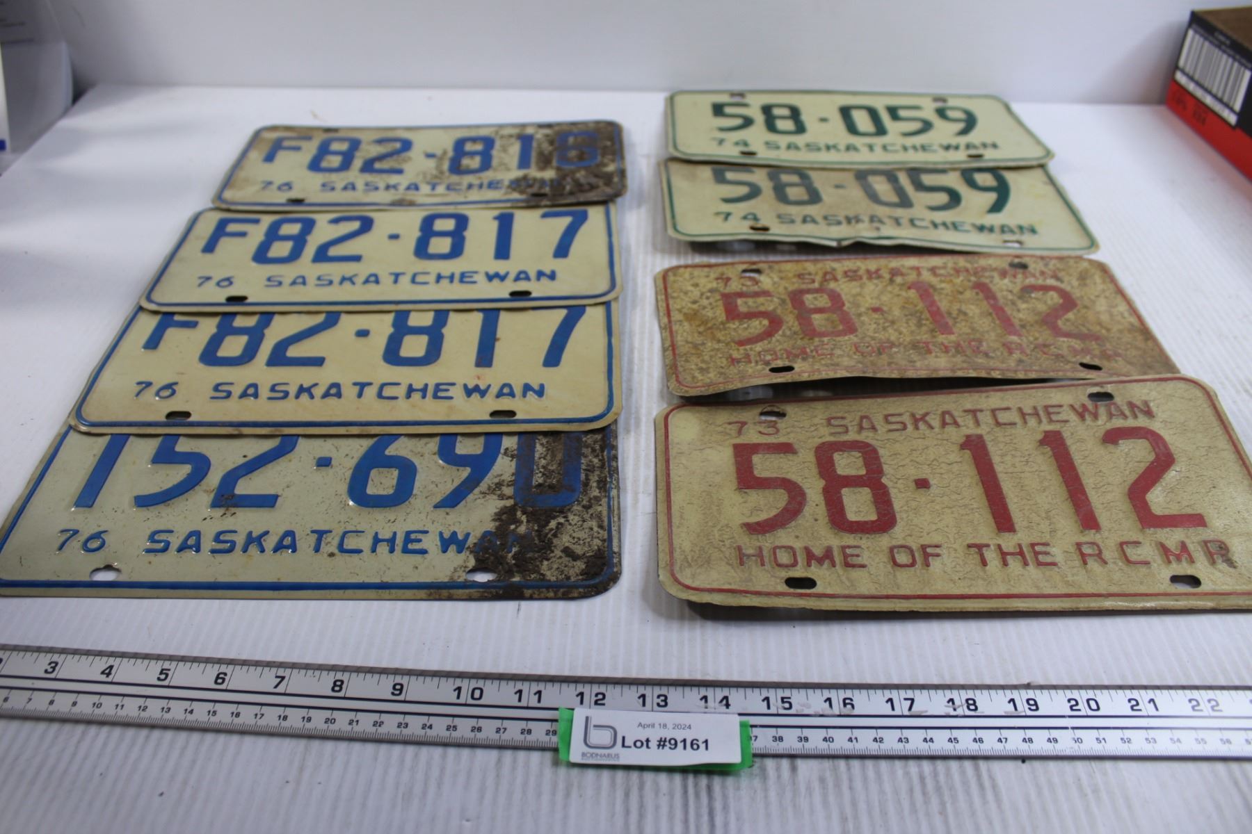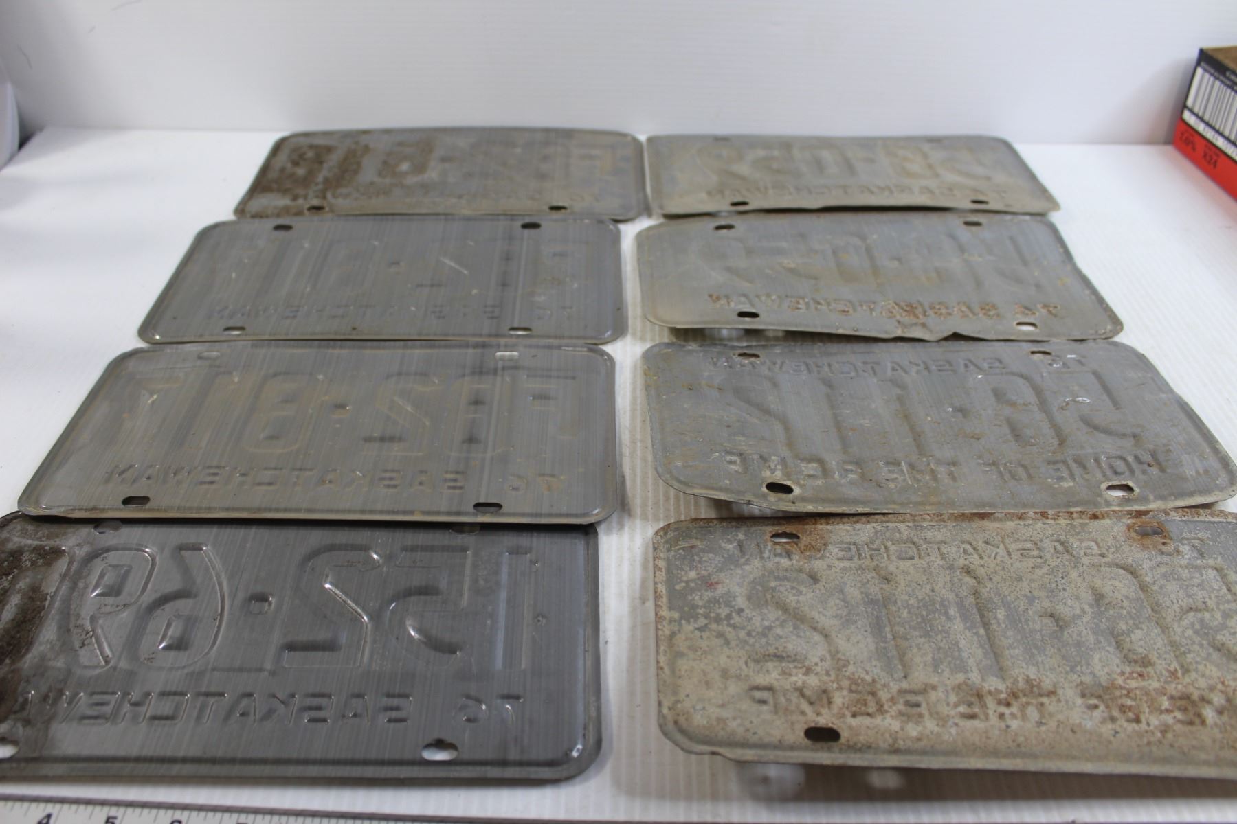 (8) Assorted Saskatchewan Farm and Reg. License Plates - (2) Pairs, Sequential Plate