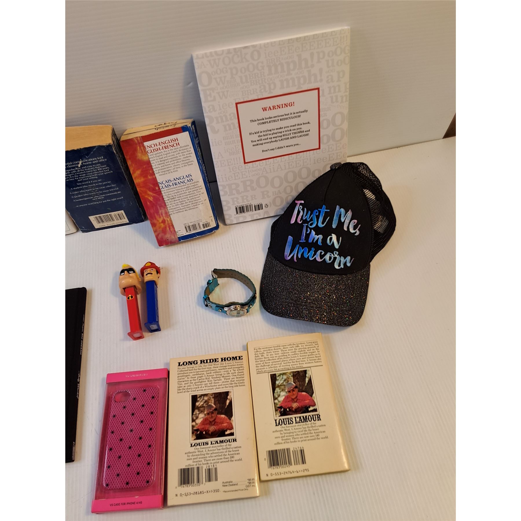 (8) Books, (2) Pez Dispensers,  Iphone 4 Phone Case, Misc