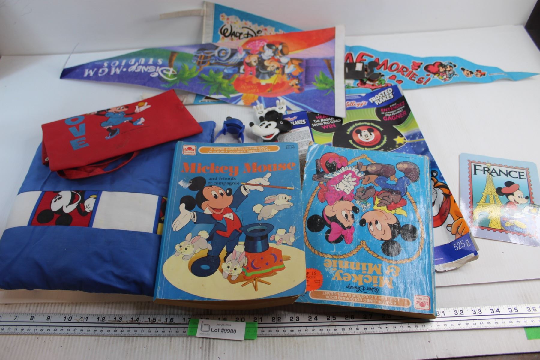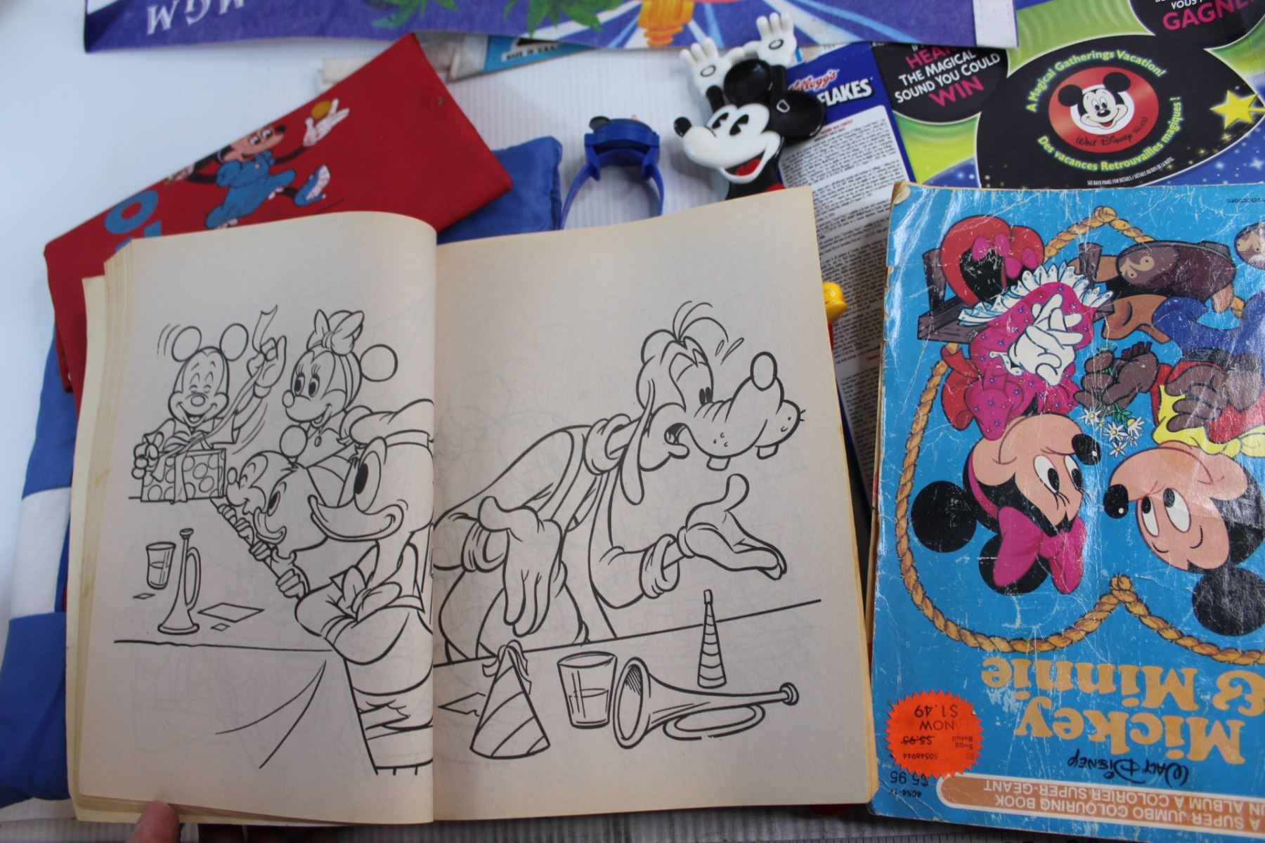 (8) Disney Collectibles -Mickey Mouse Books, Pennants, Toys