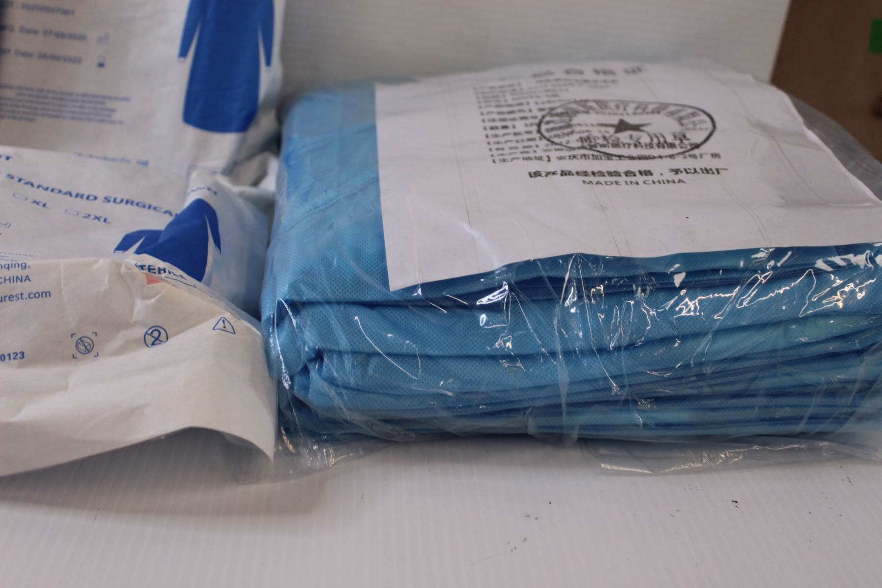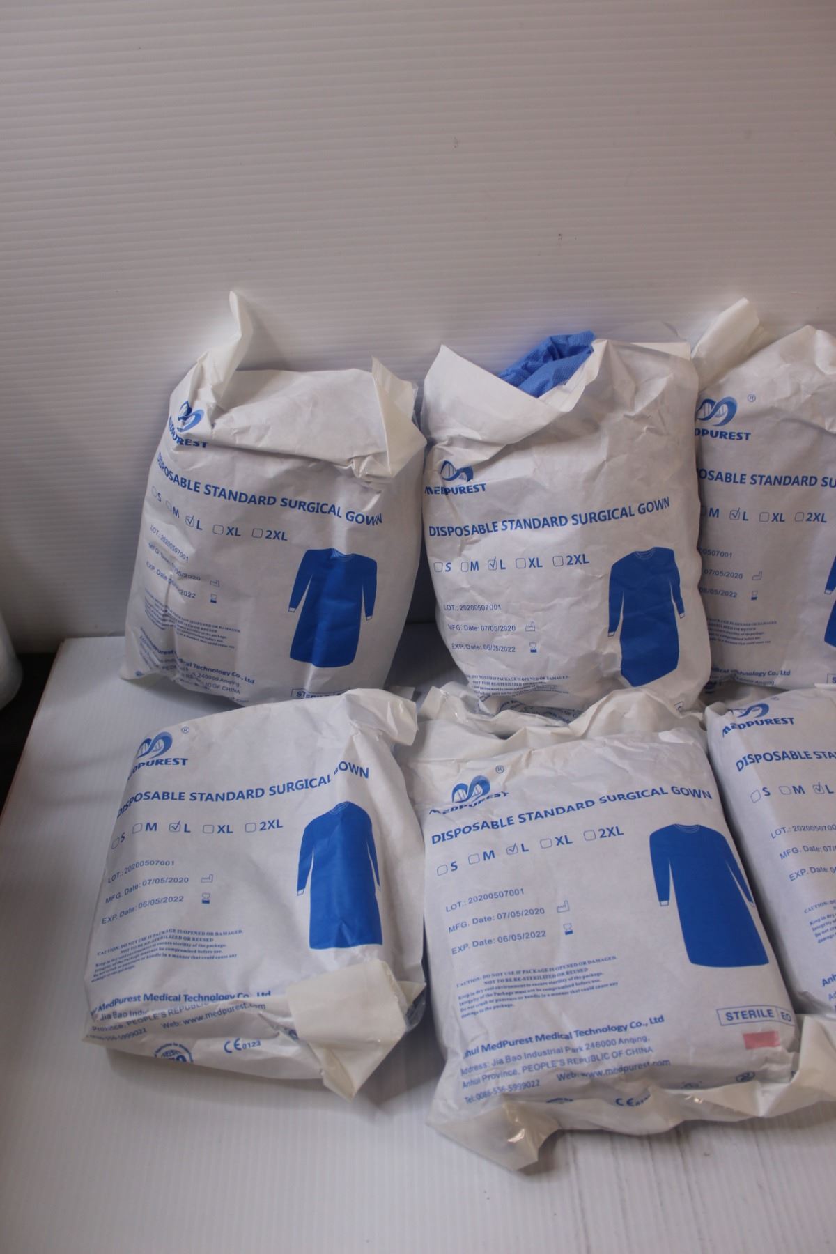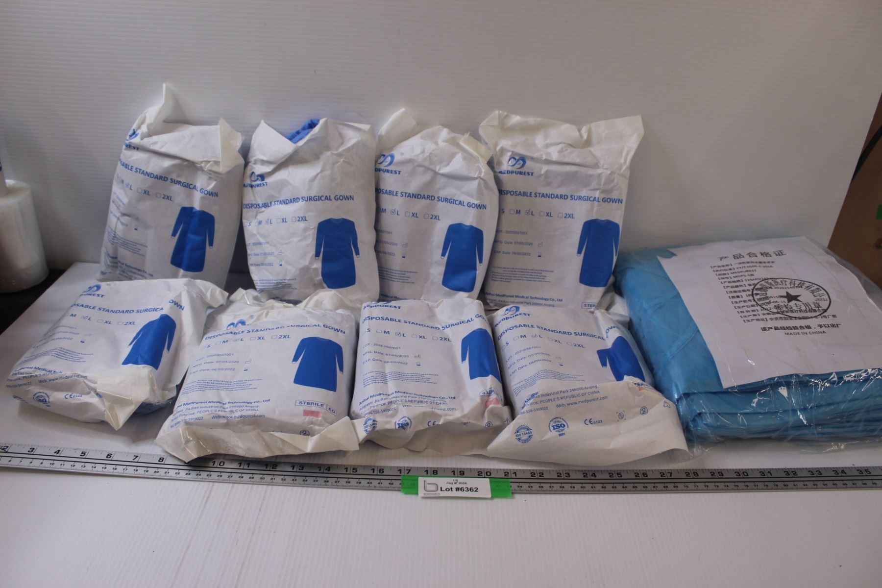 (8) Disposable Surgical Gowns & Package of Gowns - Size Unknown