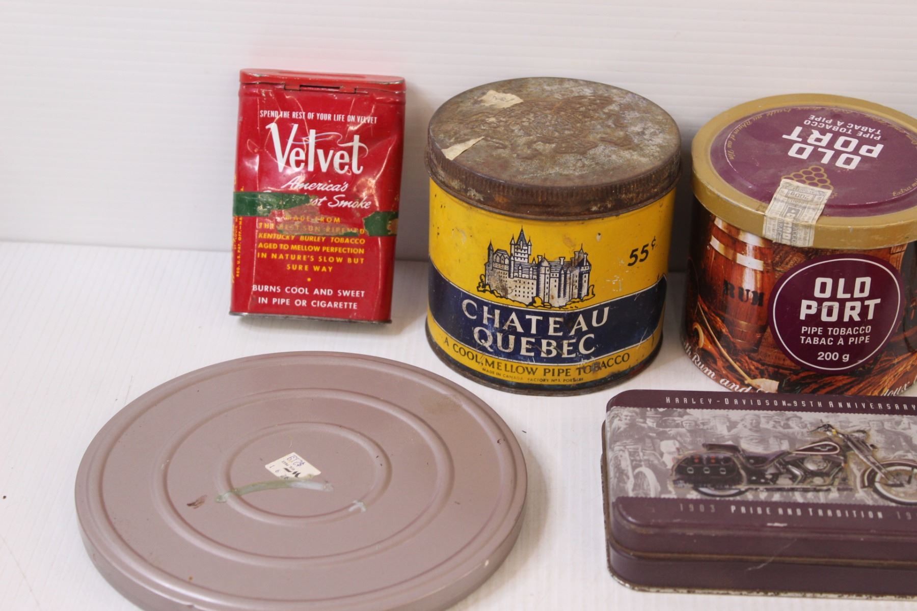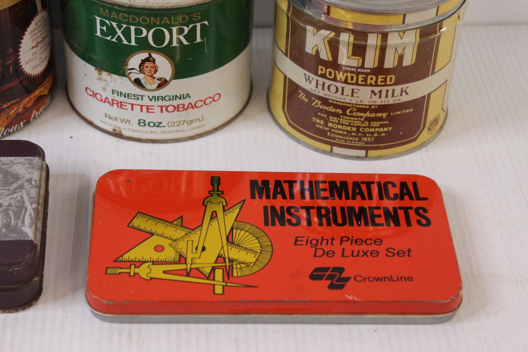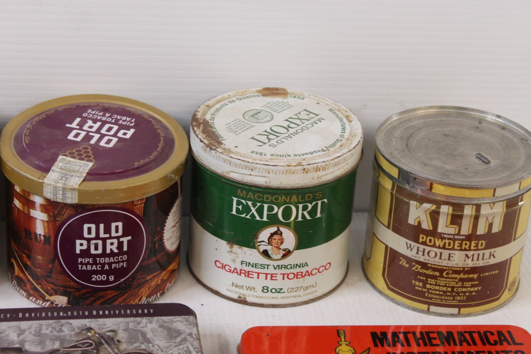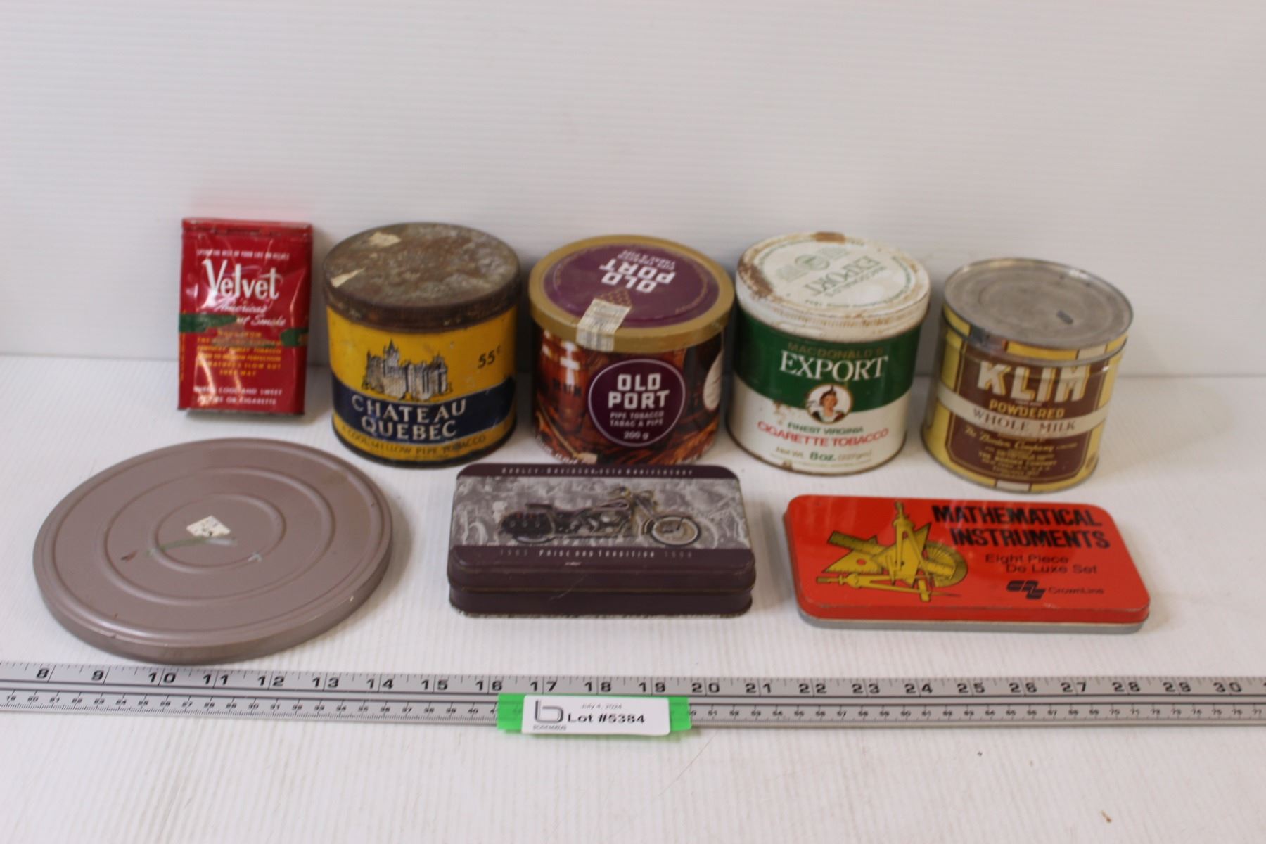 (8) Metal Tins: Tobacco, Harley Davidson, Geometry Set