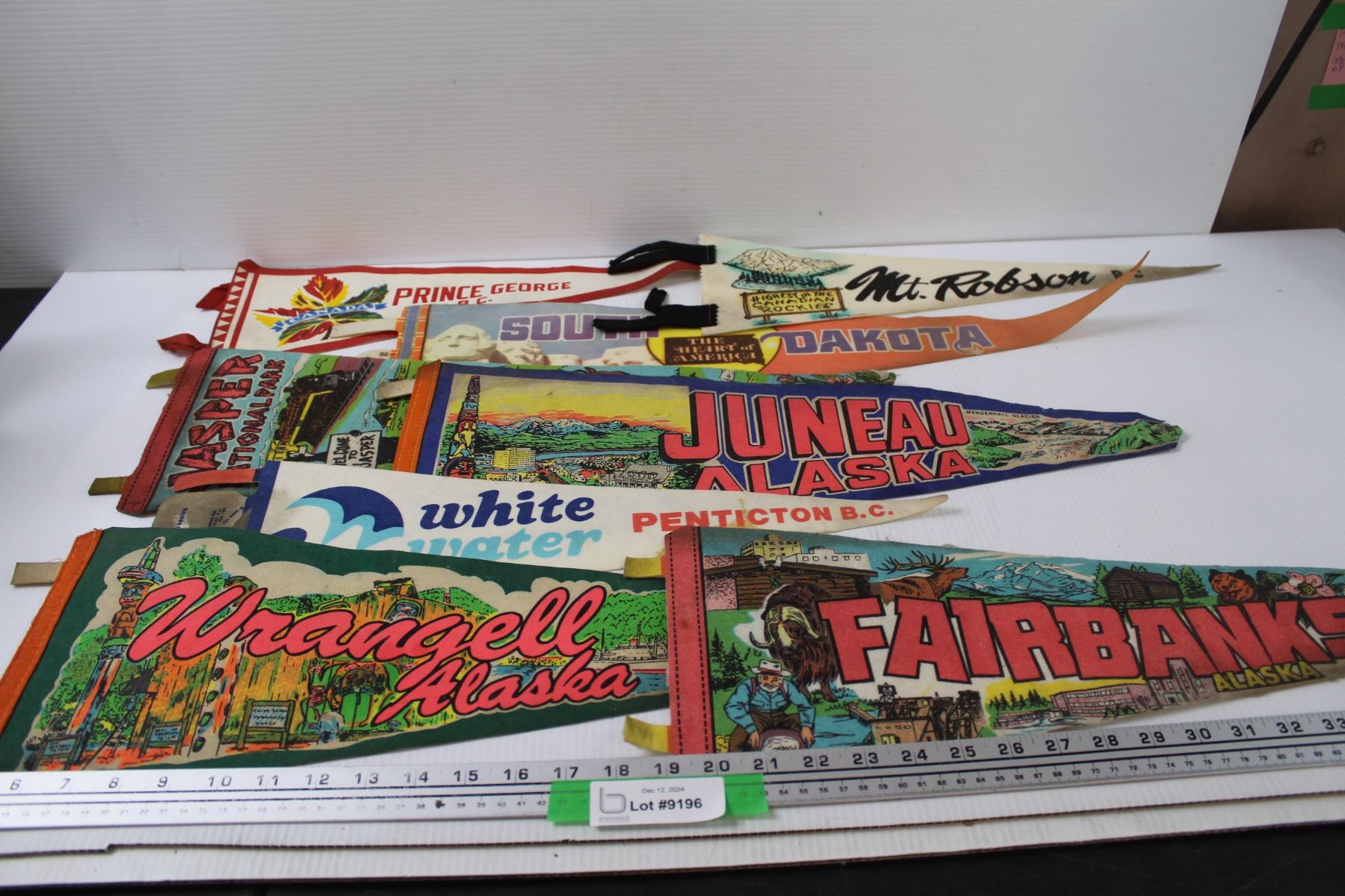 (8) Pennants: Prince George, Mt. Robson, Jasper, Penticton, Fairbanks, Juneau, Wrangell, South Dakot