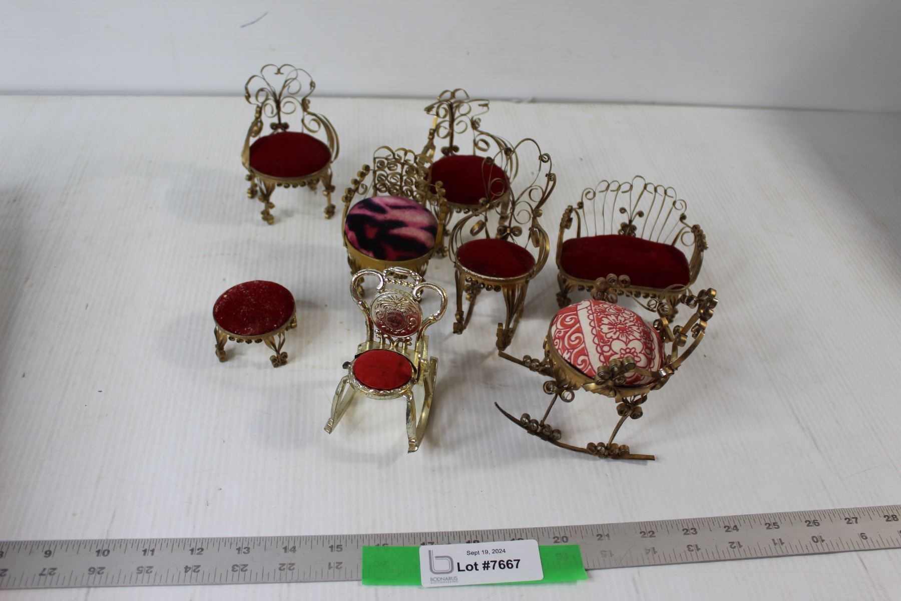 (8) Pieces Of Tin Can Furniture - Chairs, Rocking Chairs, Bench