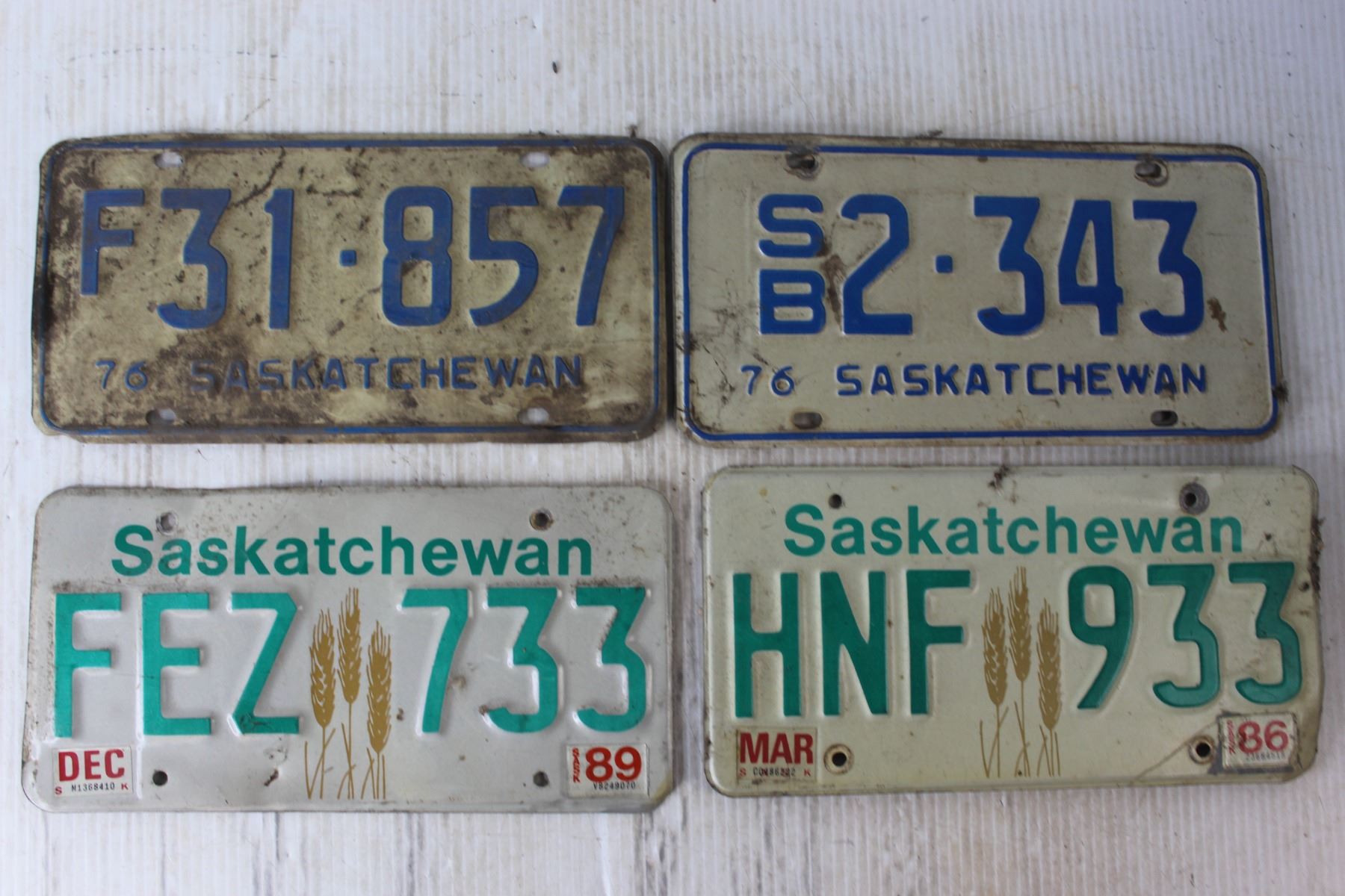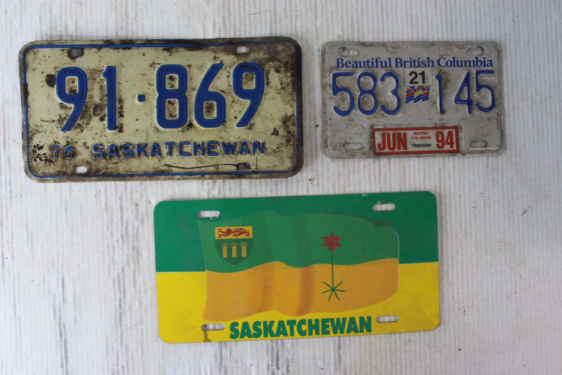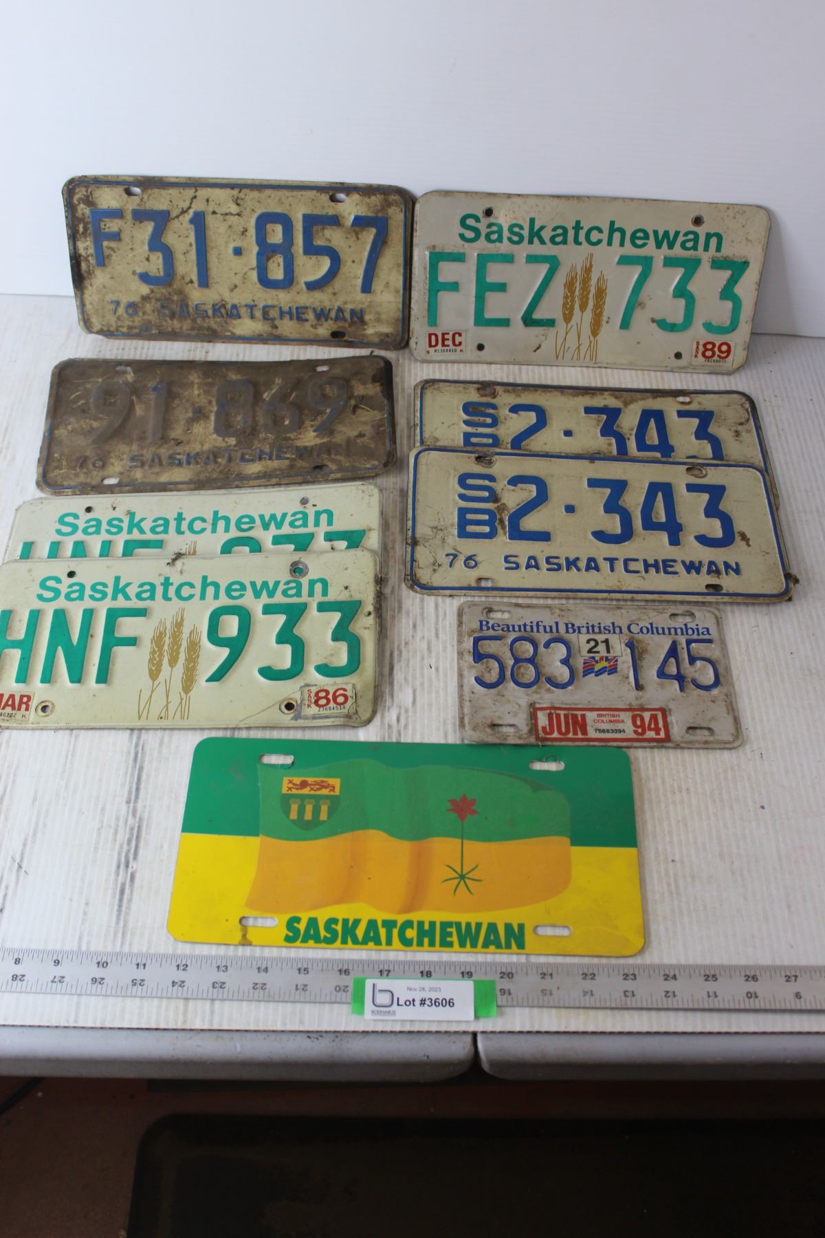 (8) Saskatchewan License Plates - 1976, 1986, 1989; (1) BC License Plate - 1994