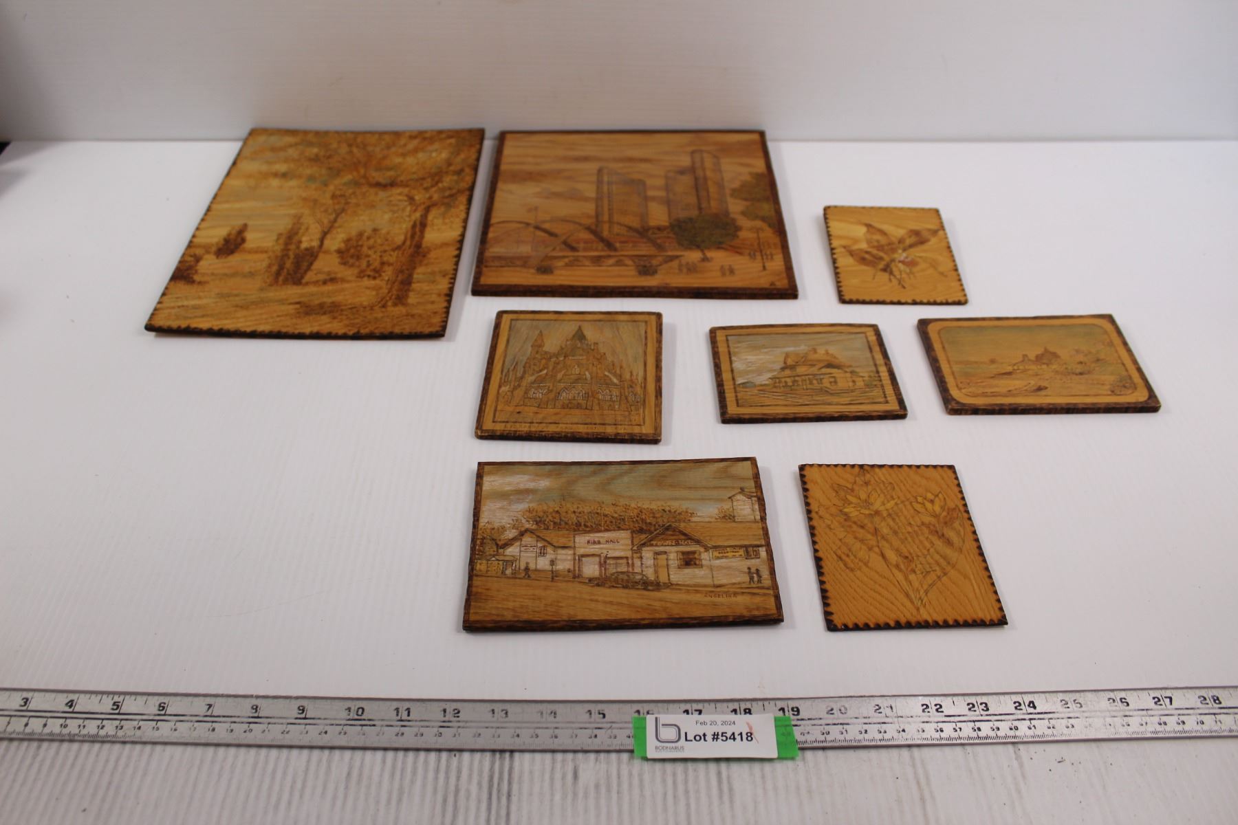 (8) Wooden Art Pieces - Largest Measures 9" x 12"