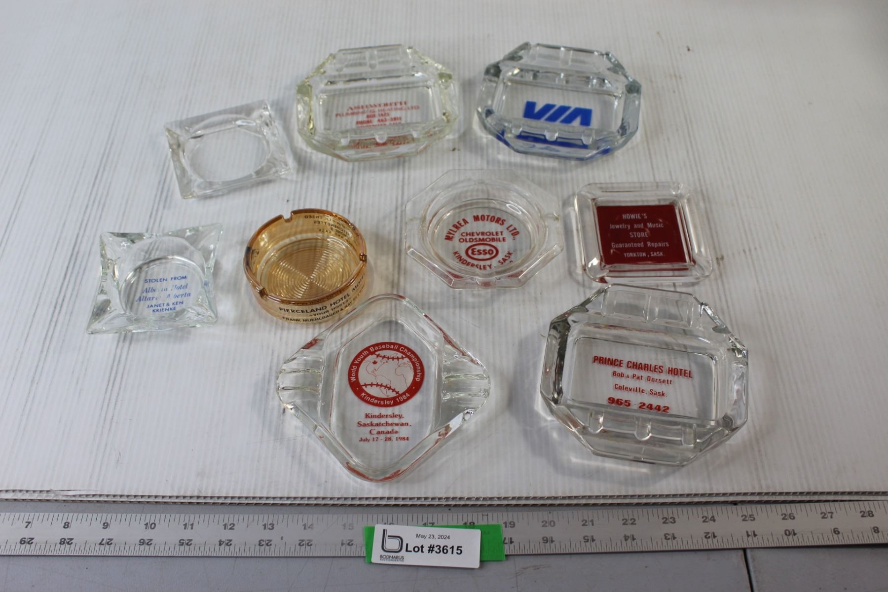 (9) 1950, 1970 Antique Business Logo Ashtrays
