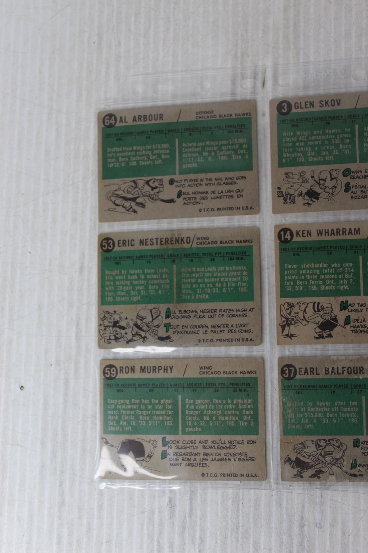 (9) 1958-59 Topps NHL Trading Cards - Chicago Blackhawks