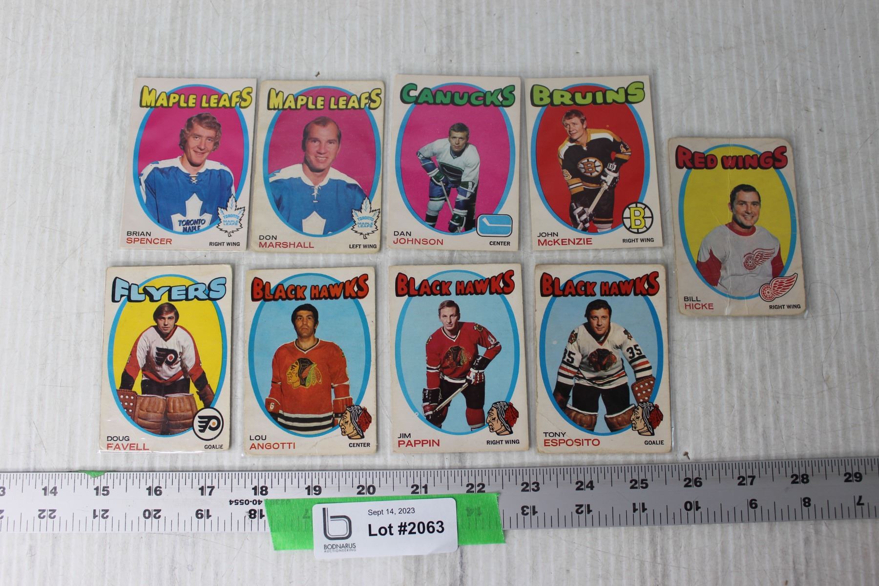 (9) 1971-72 OPC NHL Trading Cards - Esposito, Hicke, Favell, Spencer