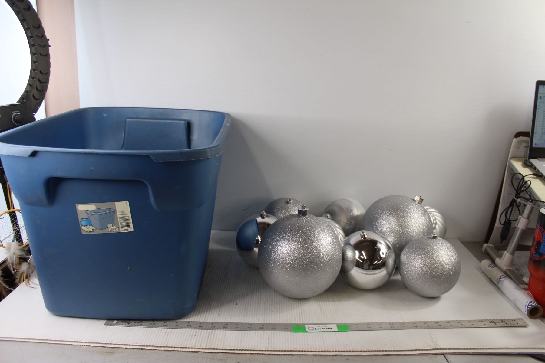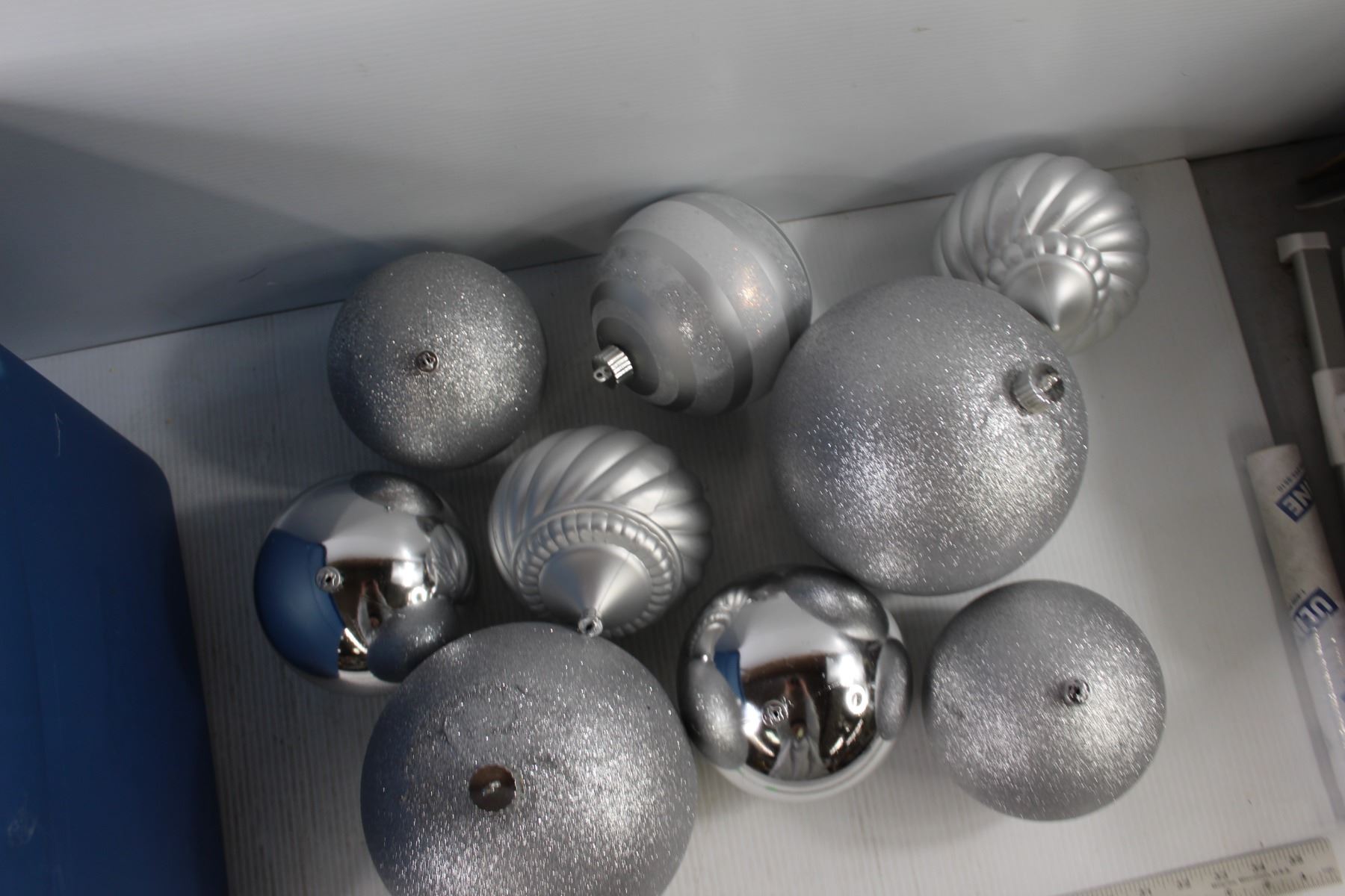 (9) Big Christmas Ornaments, Blue Tote