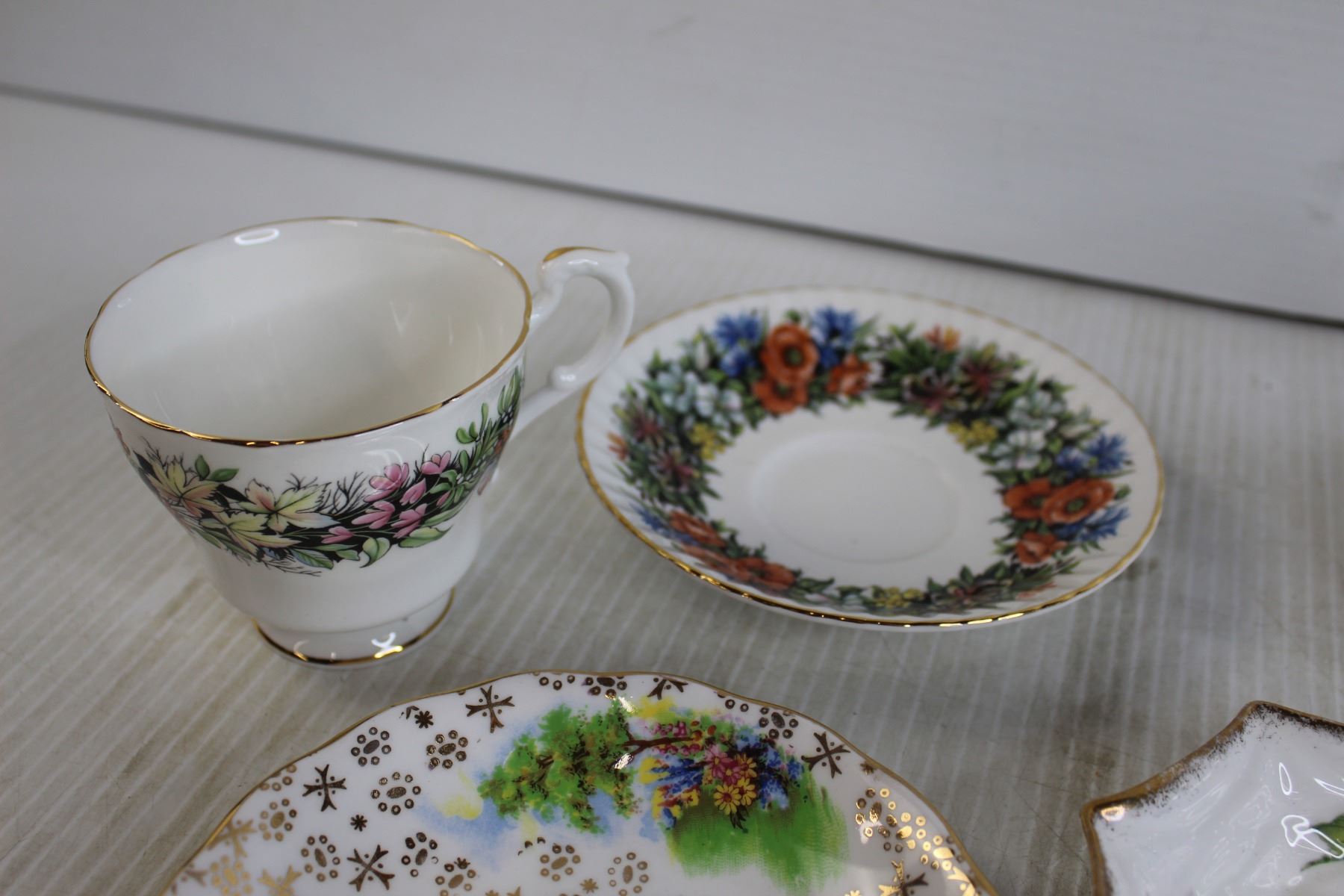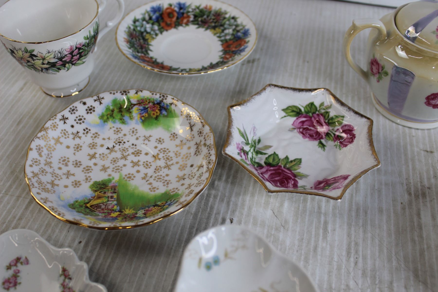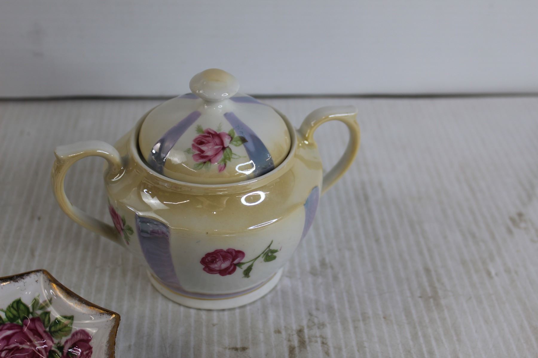 (9) Bone Dishes, (4) Small Bowls/Saucers, Teacup, Sugar Holder
