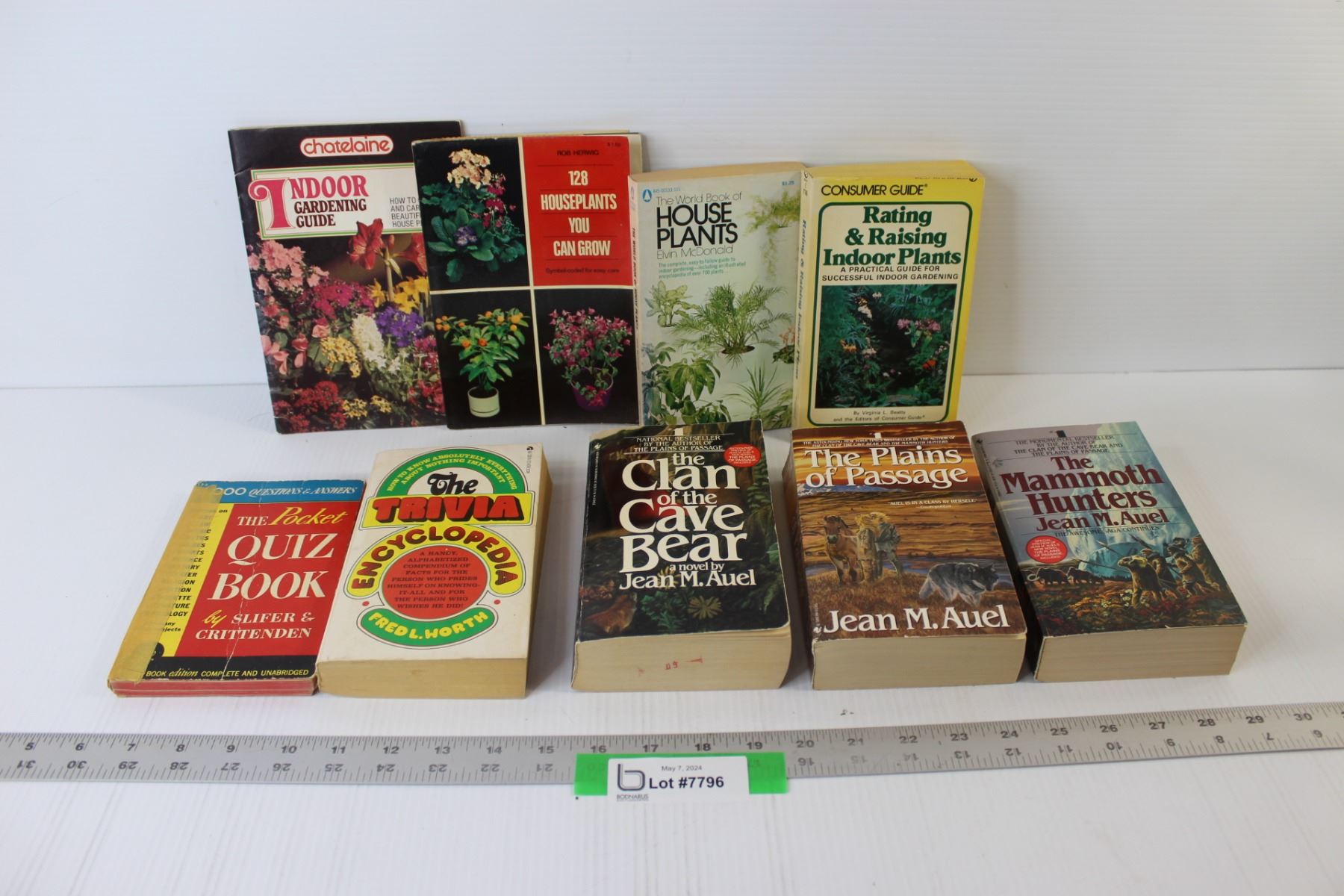 (9) Books: Jean M. Auel Series, Indoor Gardening Themed, Trivia Books