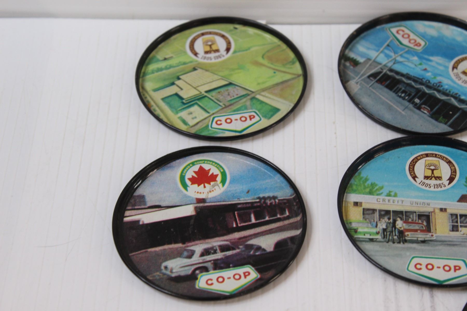 (9) Co-op Vintage Coasters, Utility Folding Knife in Holster, Blue Chips in Vintage Tin, Marble Shoo