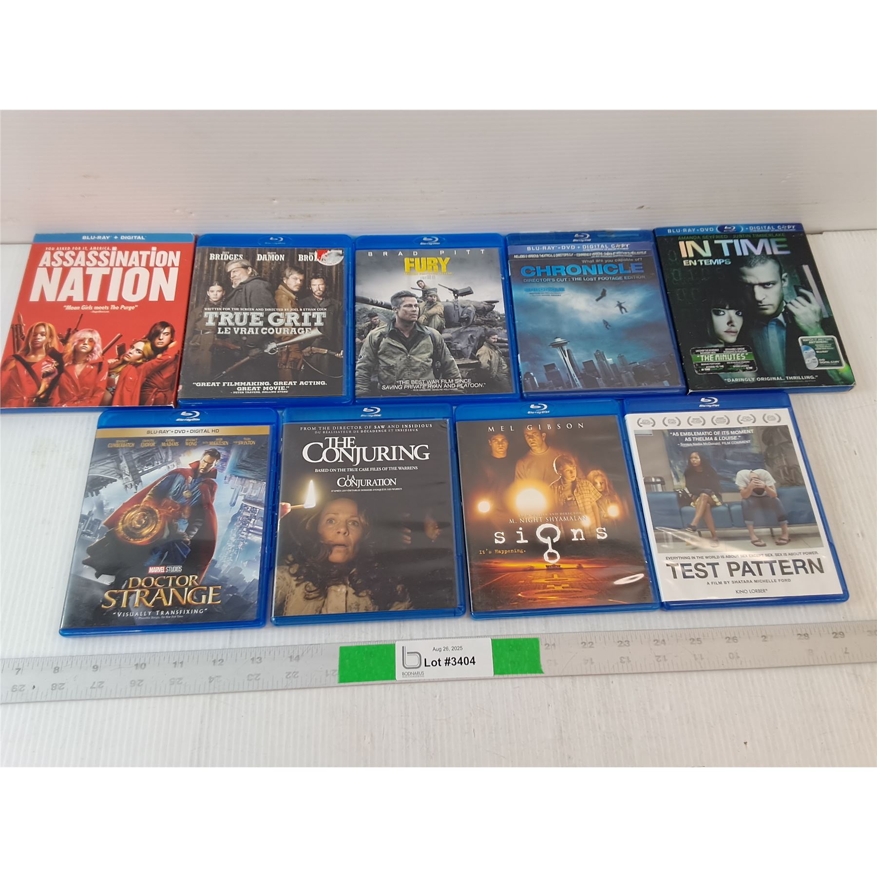(9) DVD/Blu-Ray Discs-The Conjuring, True Grit, In Time