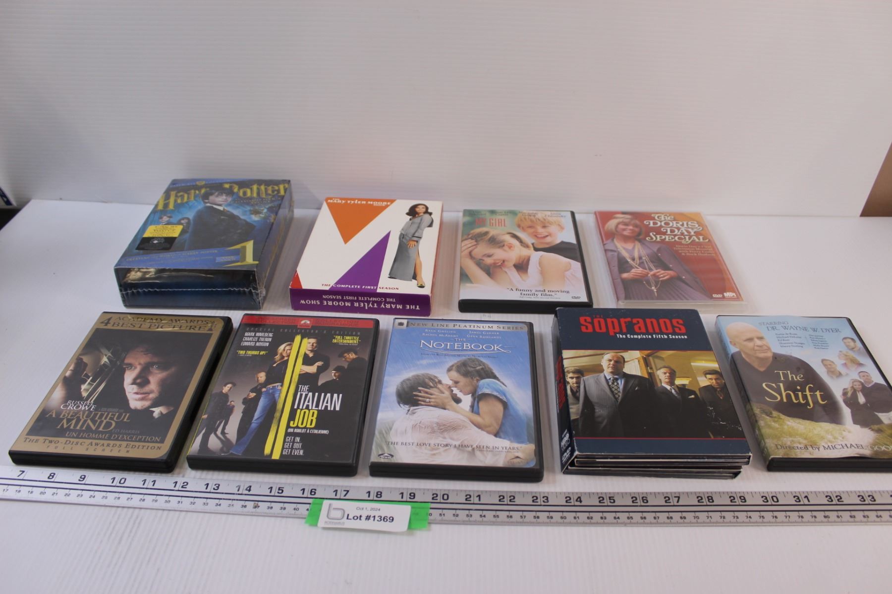 (9) DVDS: Harry Potter (Year One), Beautiful Mind, Mary Tyler Moore, My Girl, Doris Day, Sopranos, Notebook, Misc.