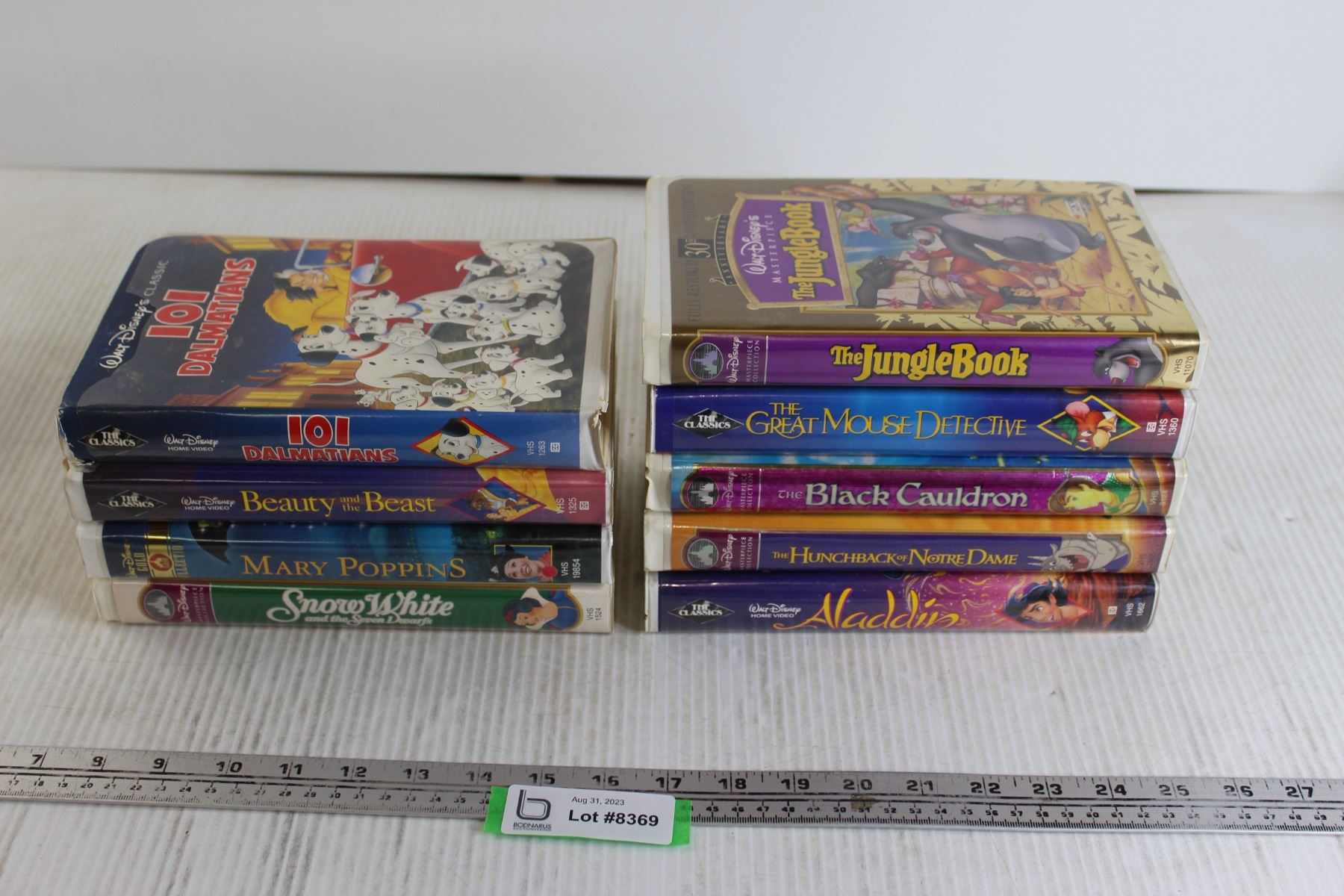 (9) Disney VHS Tapes - 101 Dalmatians, Beauty and the Beast, The Jungle Book, Snow White, Aladdin, G