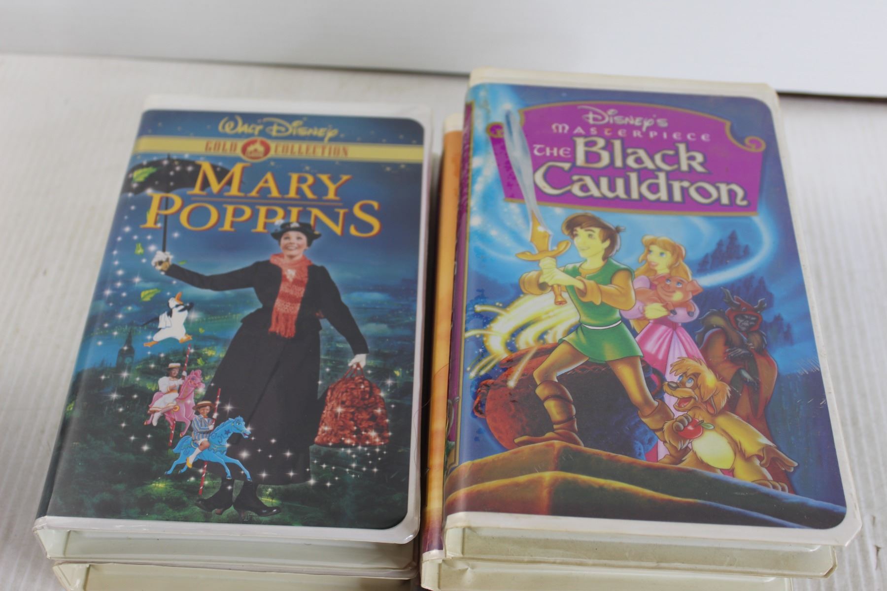 (9) Disney VHS Tapes - 101 Dalmatians, Beauty and the Beast, The Jungle Book, Snow White, Aladdin, Gold Collection Mary Poppins