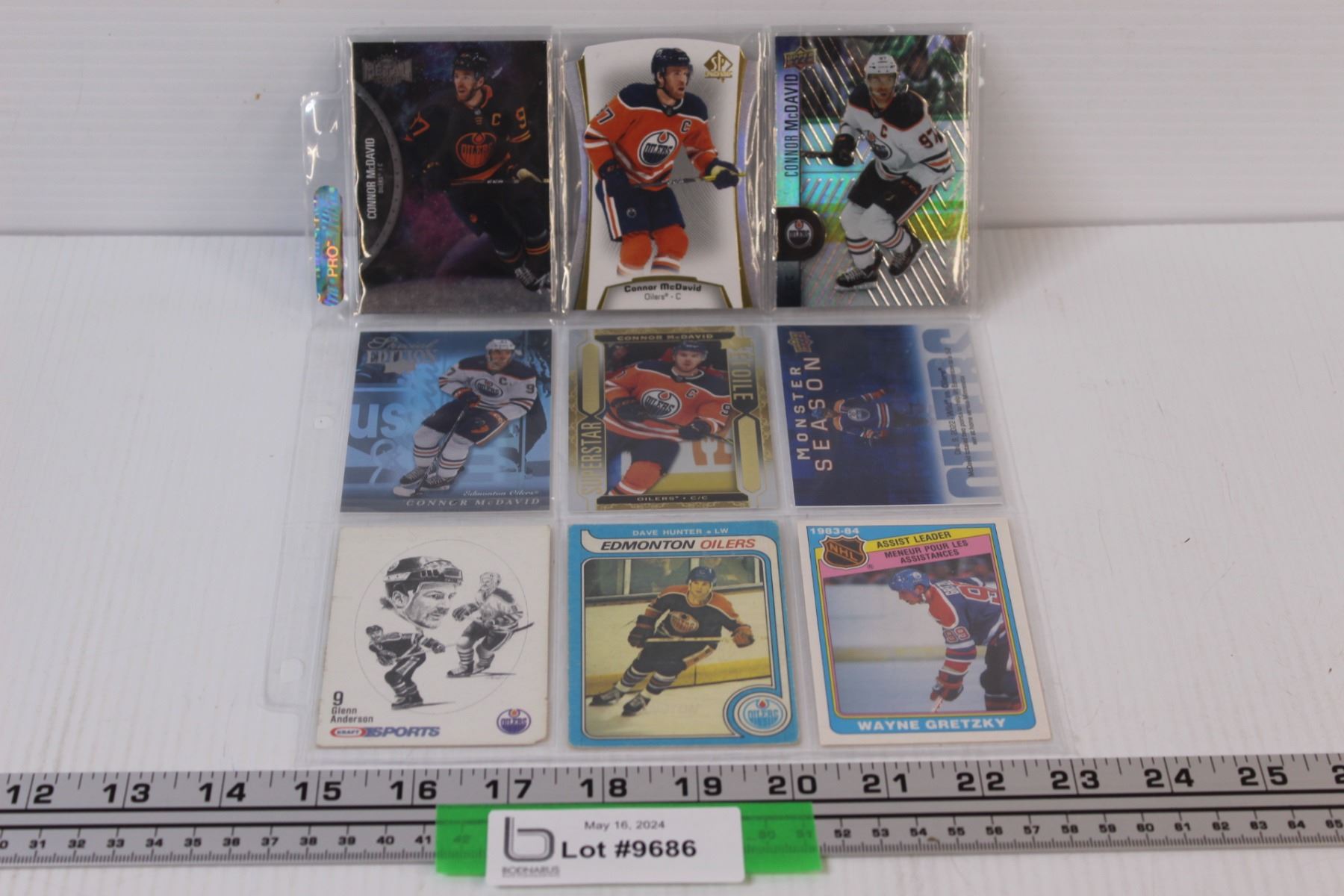 (9) Edmonton Oilers Hockey Cards: 6 - Connor McDavid; Wayne Gretzky; Anderson; Hunter