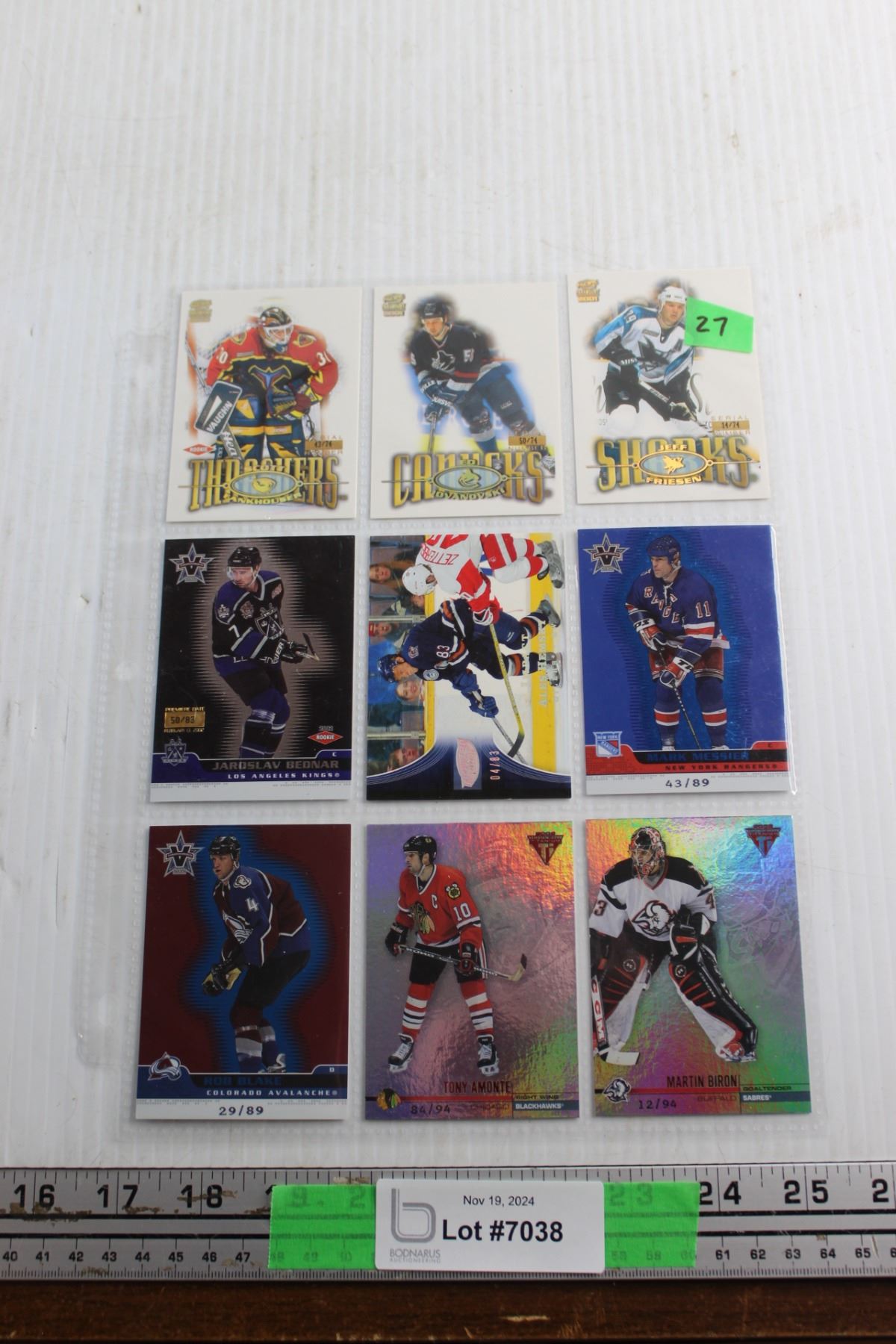 (9) Hockey Cards - Fankhouser 43/74, Jovanovski 50/74, Friesen 14/74, Bednar 50/83, Hemsky 04/83, Messier43/89, Blake 29/89, Amonte 84/94 and Biron 12/94