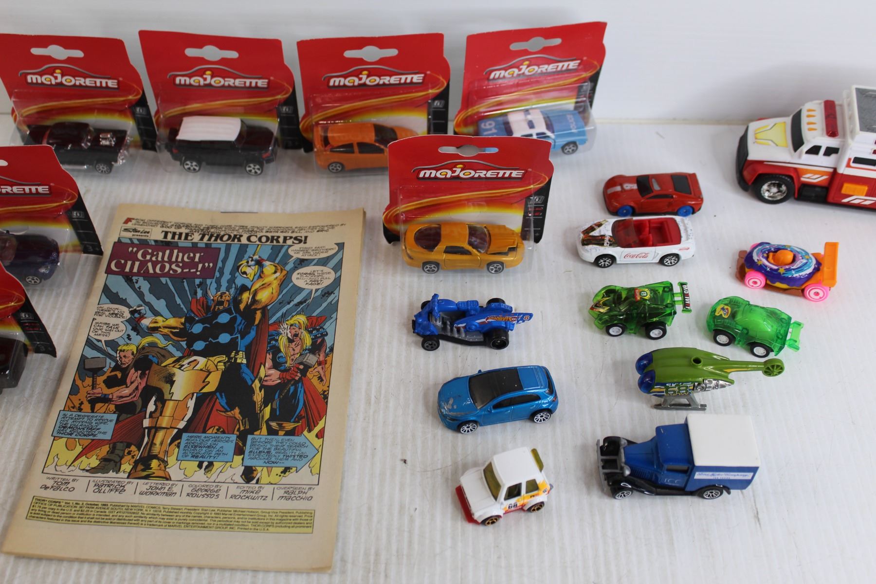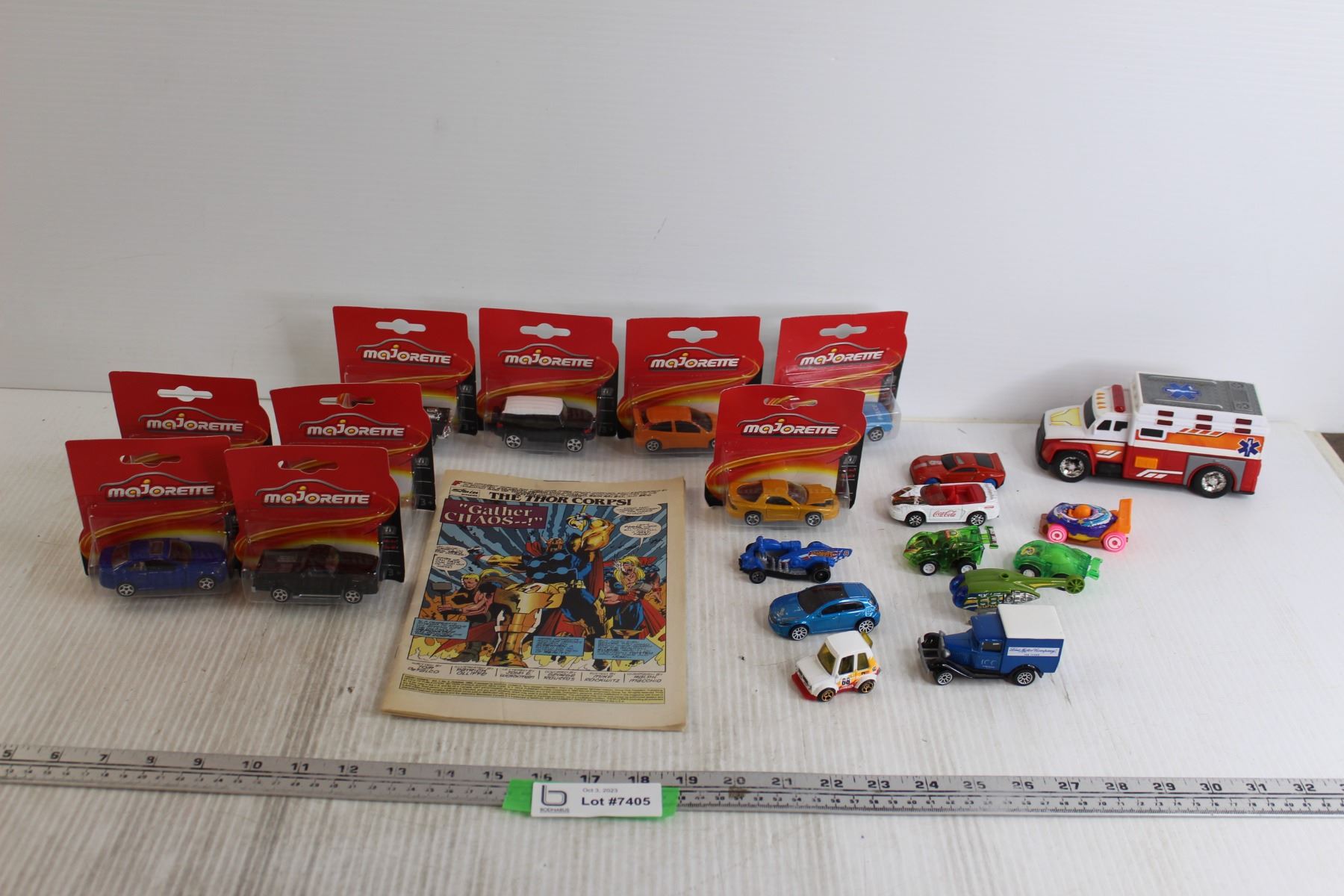 (9) Majorette Toy Cars - Sealed, Thor Comic, (11) Toy Cars - Coca-Cola, Ambulance
