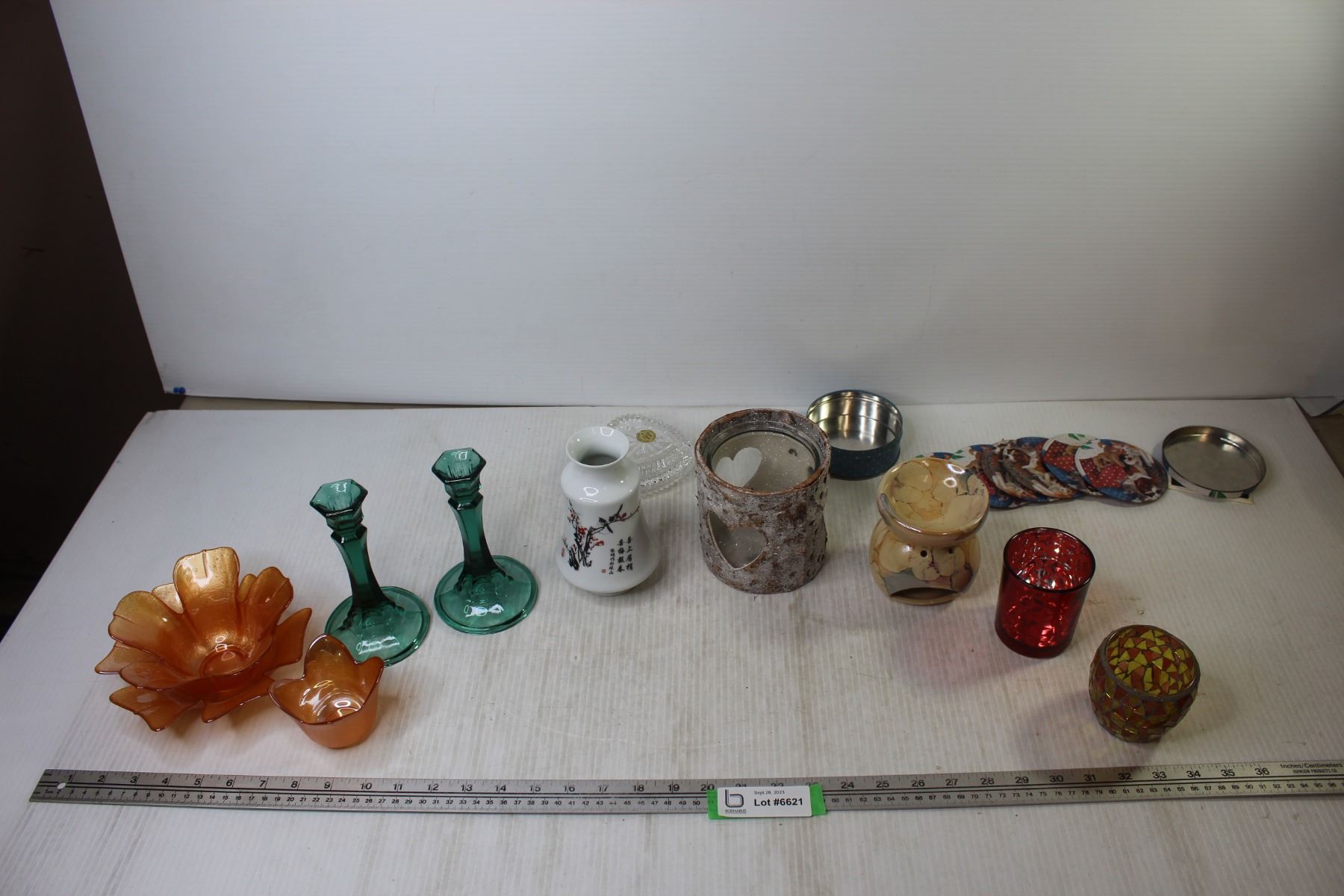 (9) Varies Candle Holders + Coasters + Heart Shaped Ashtray