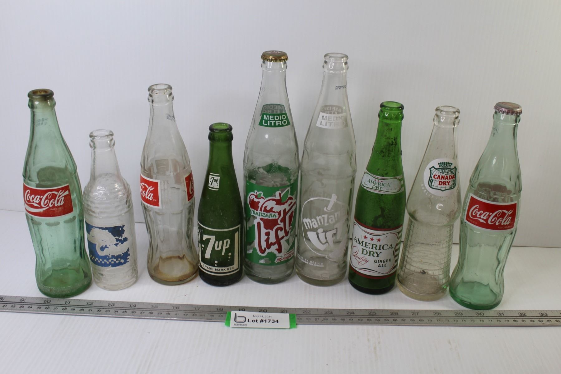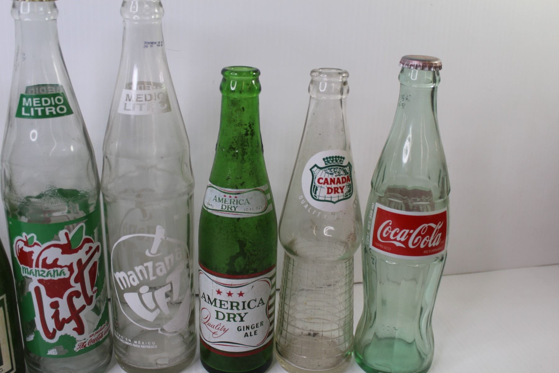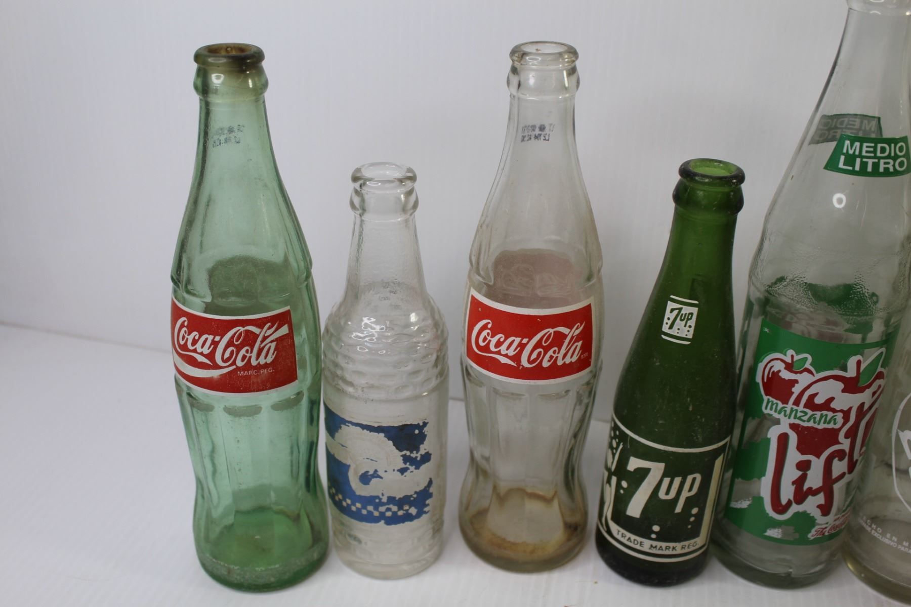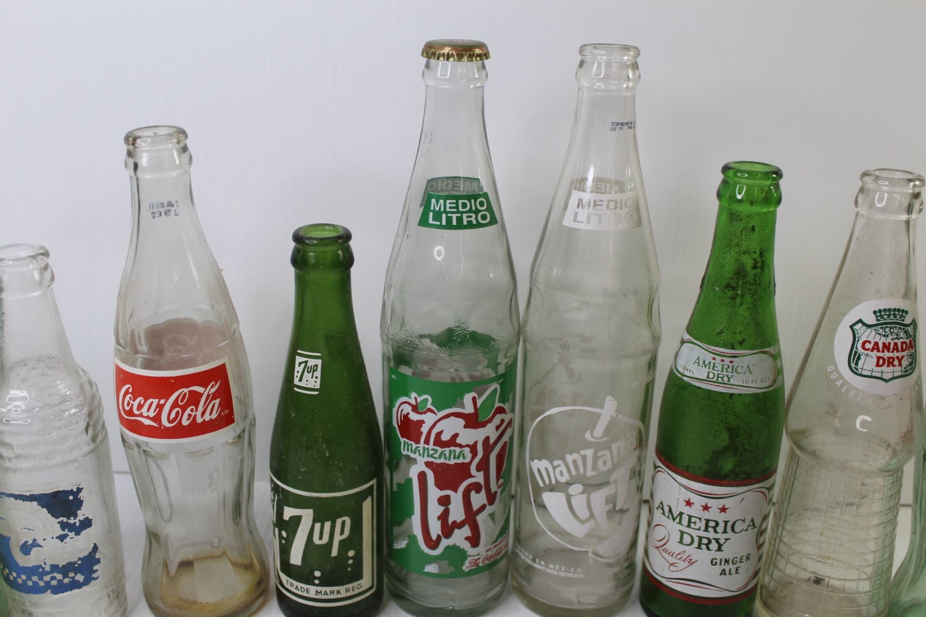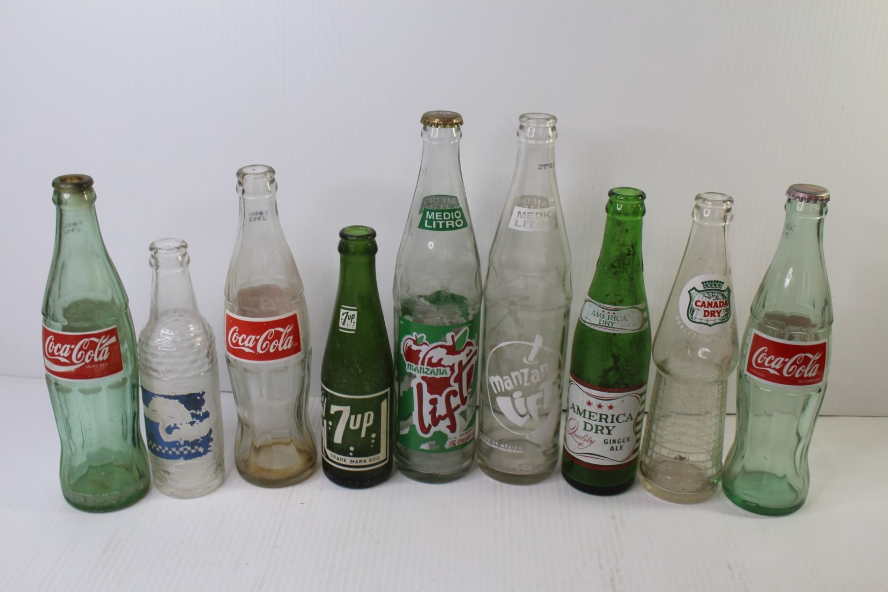 (9) Vintage Soda Bottles - Coca-Cola - Canada Dry - Manzana - 7up