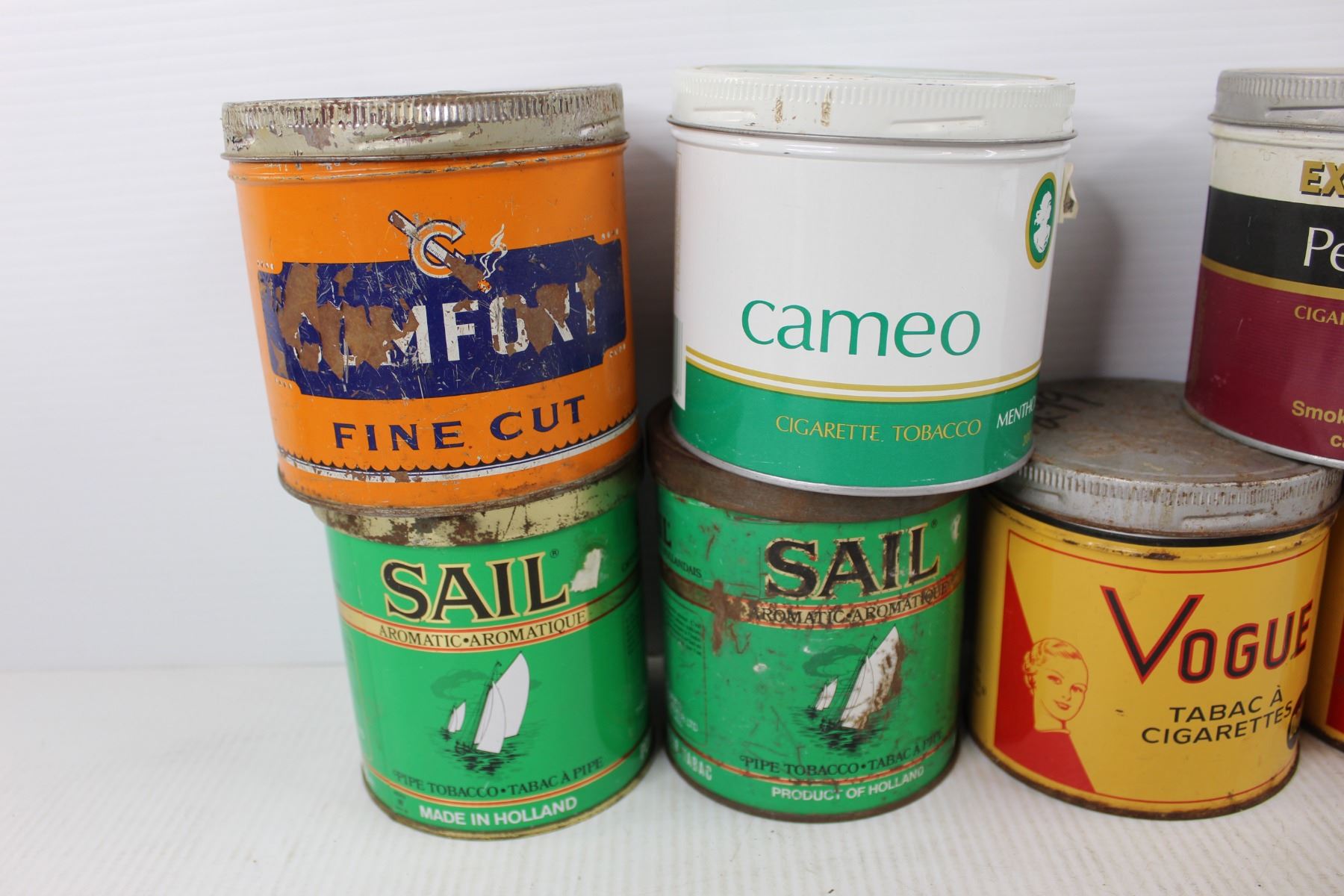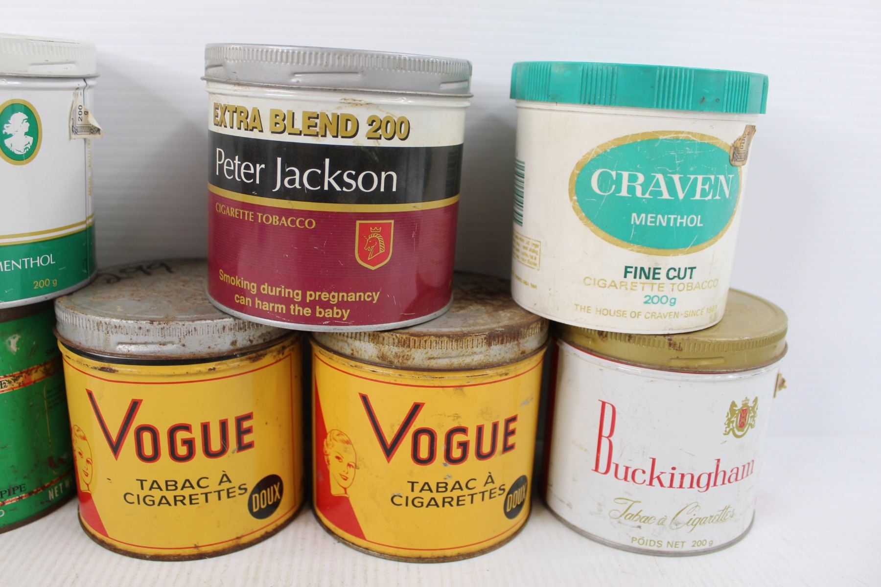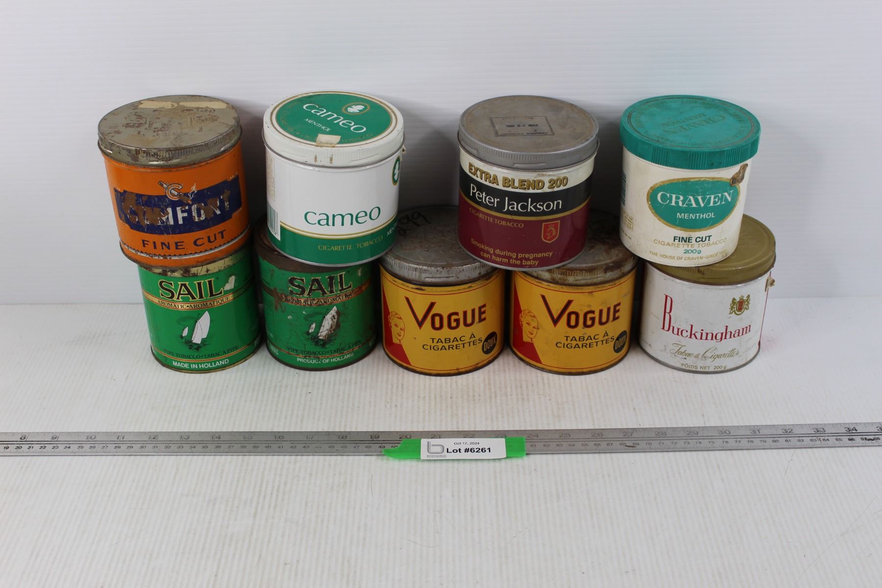 (9) Vintage Tabacco Tins, Vogue, Comfort, Buckingham, Misc.