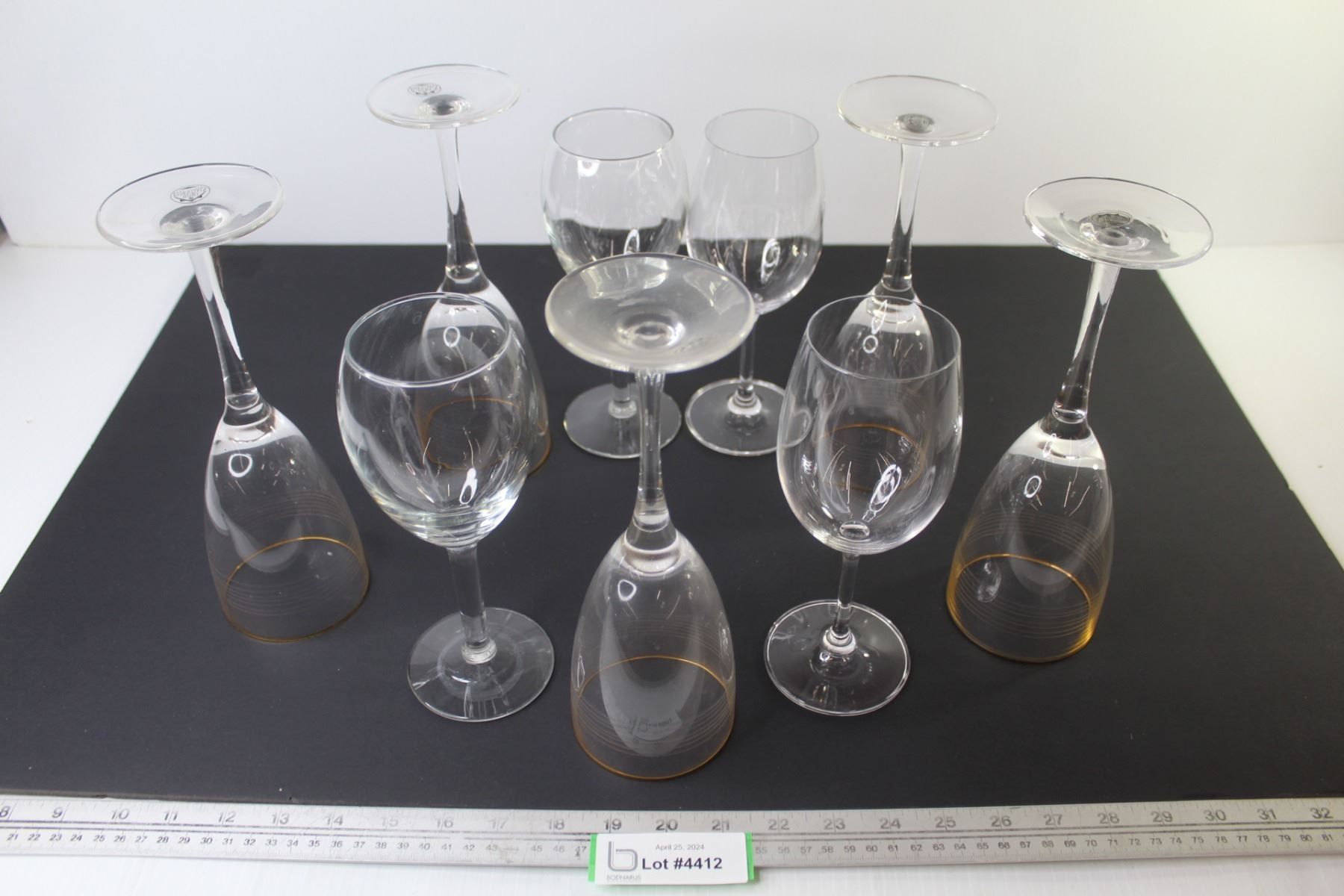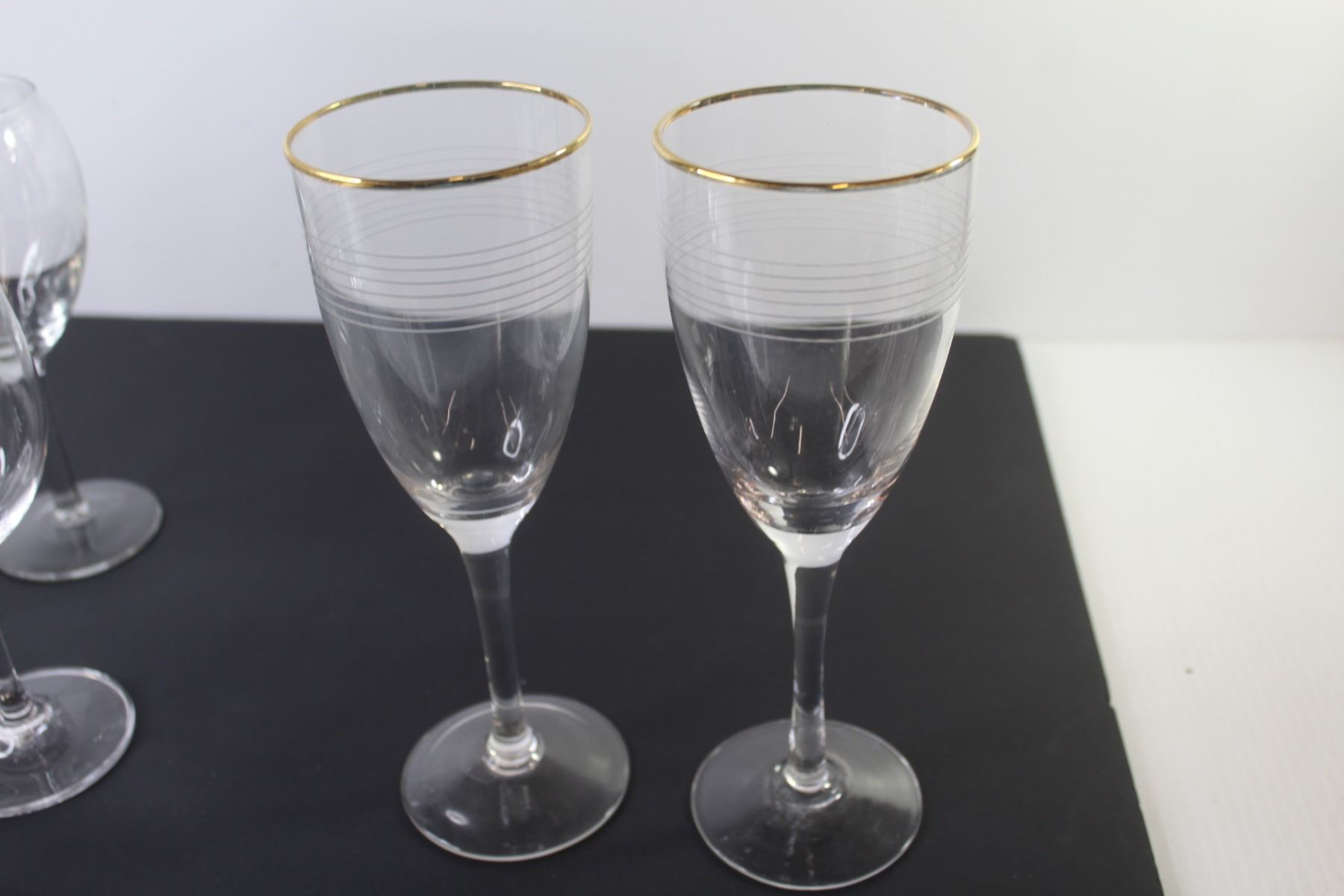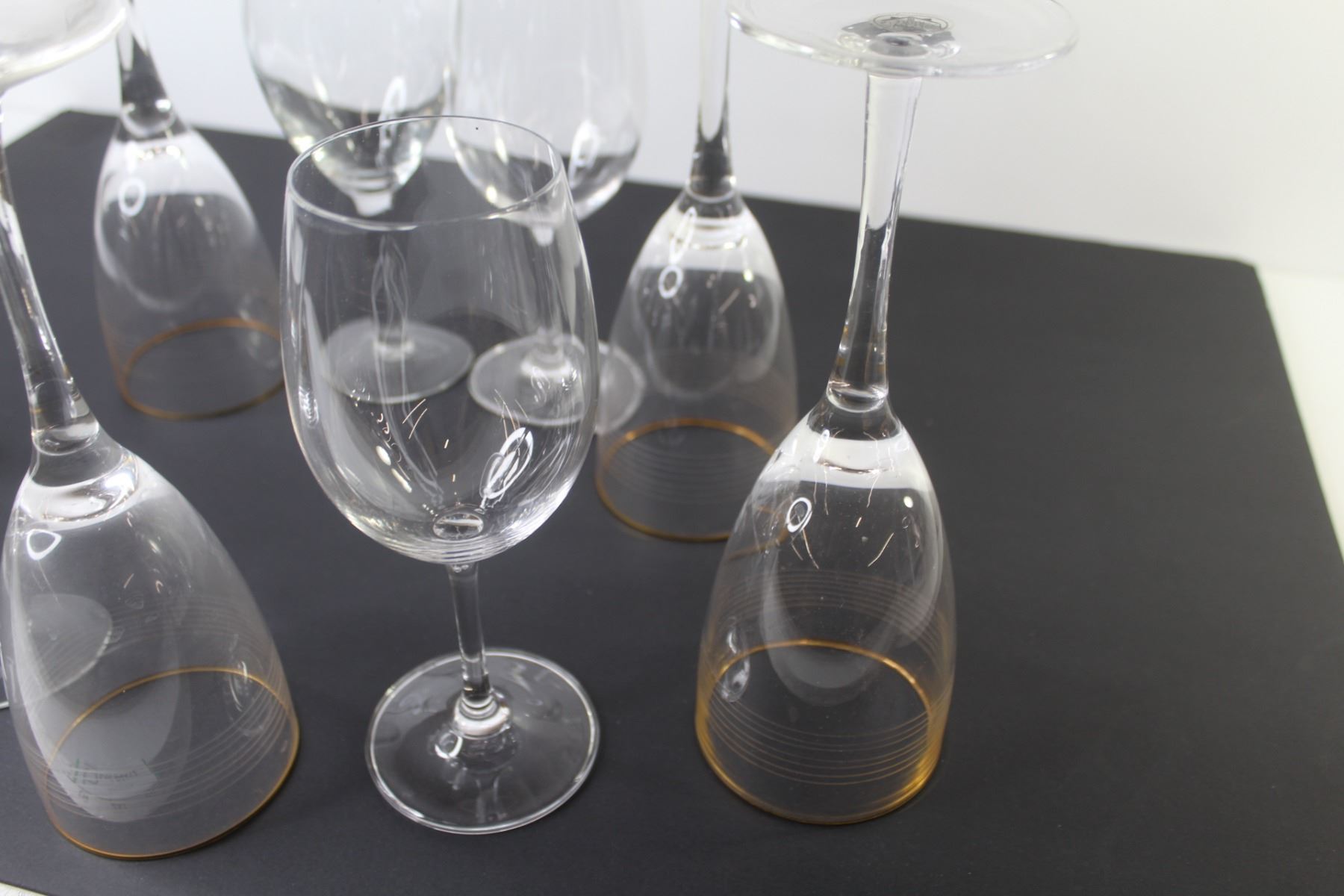 (9) Wine Glasses (4 have gold rims)