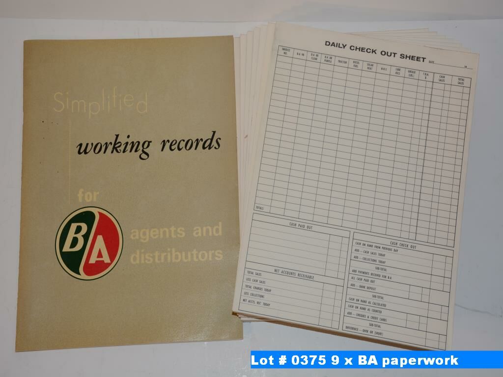 9 x BA chekchart, simplified working records, and daily check out sheet books