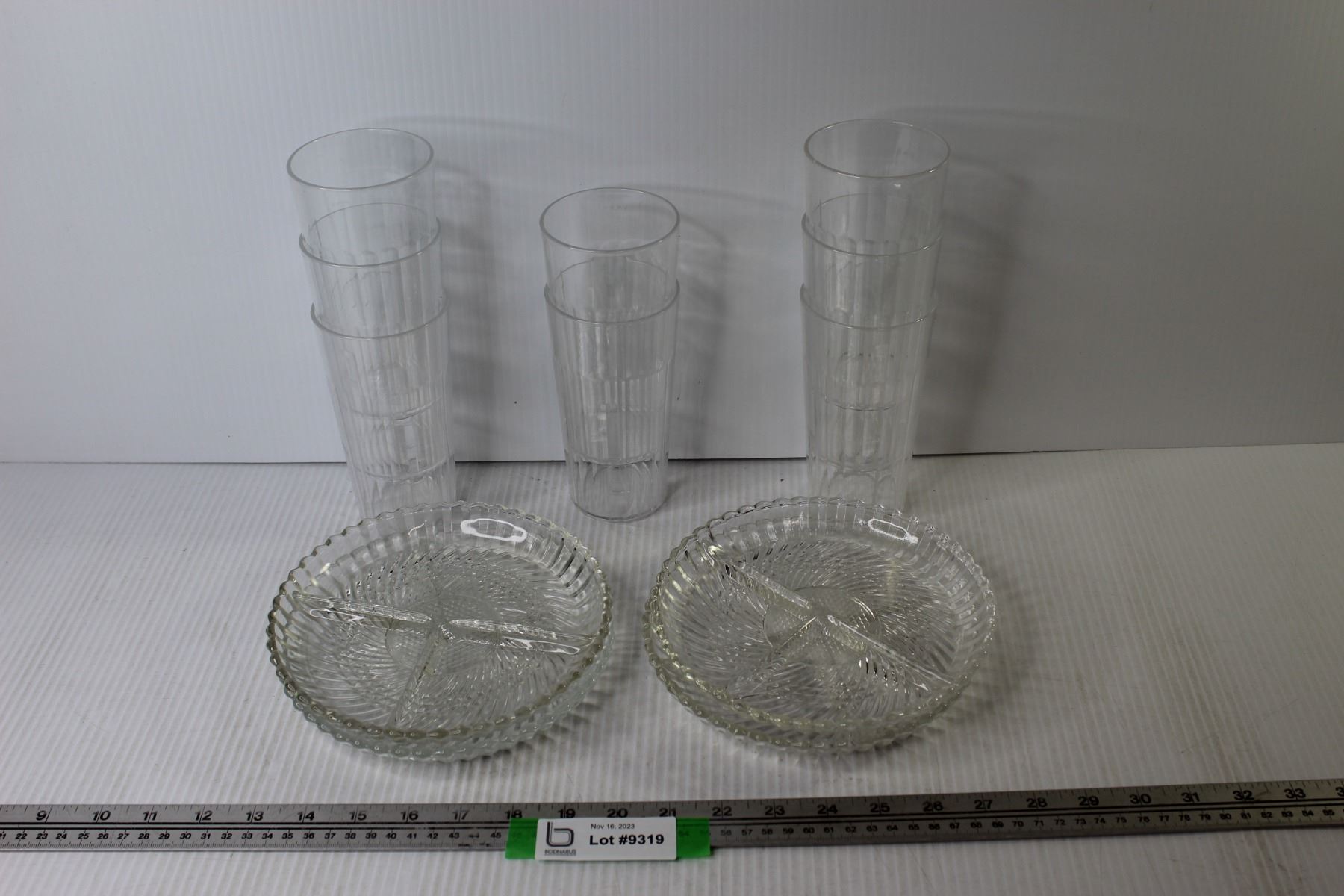 98) Plastic Glasses - (4) Glass Divided Dishes