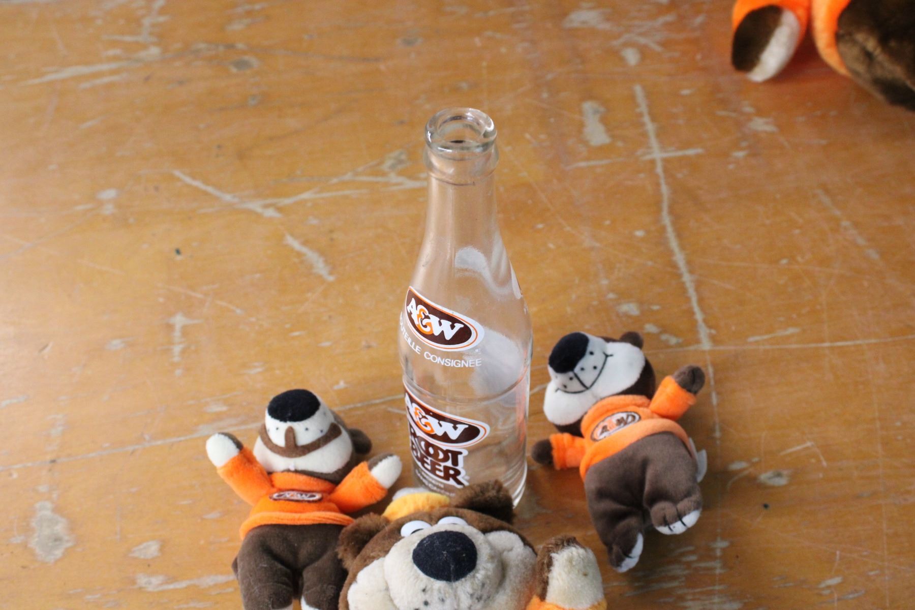 A & W Bottle and 3 A & W Bears