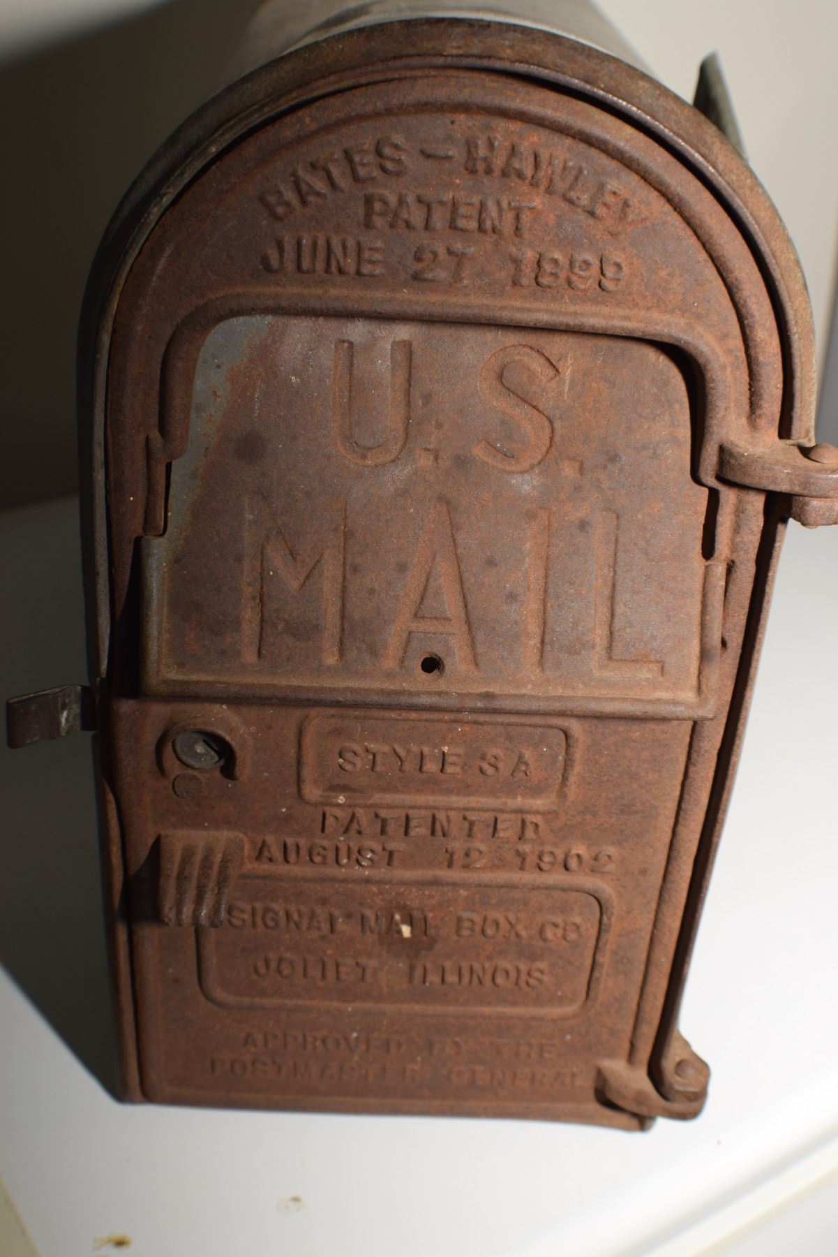 ANTIQUE 1902 LAST PAT. U.S. MAILBOX CAST AND GALVANIZED