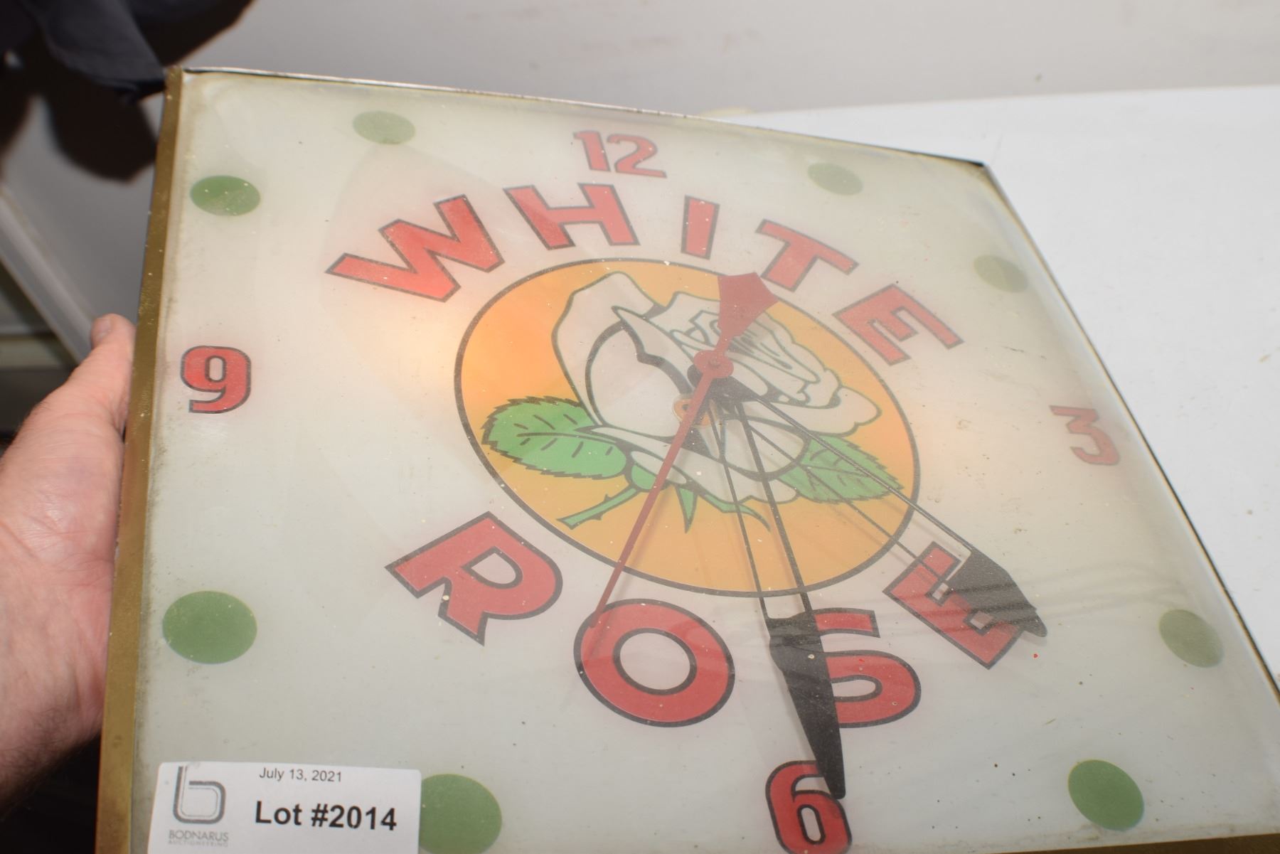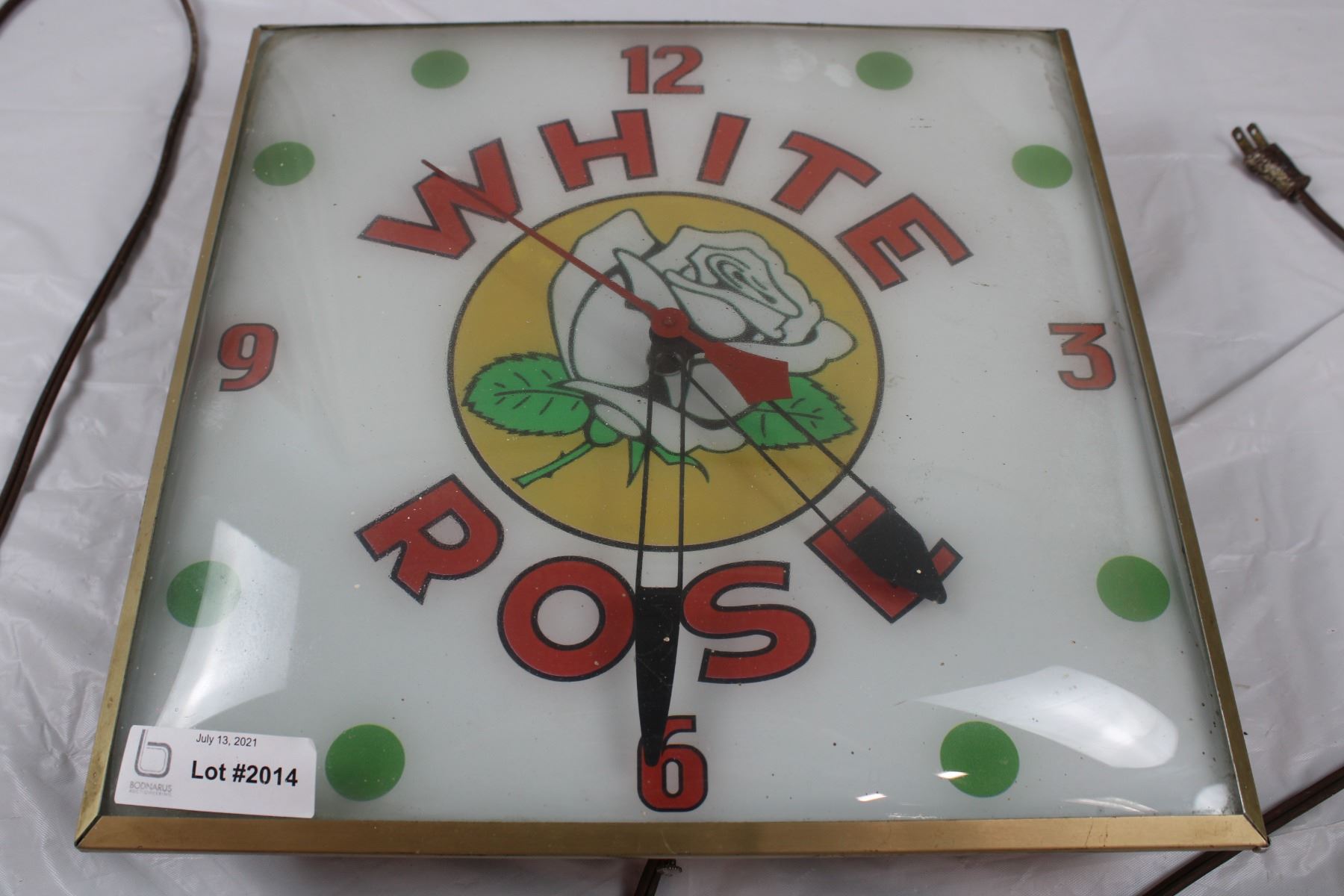 ANTIQUE WHITE ROSE OIL PAM CLOCK COMPANY WORKING