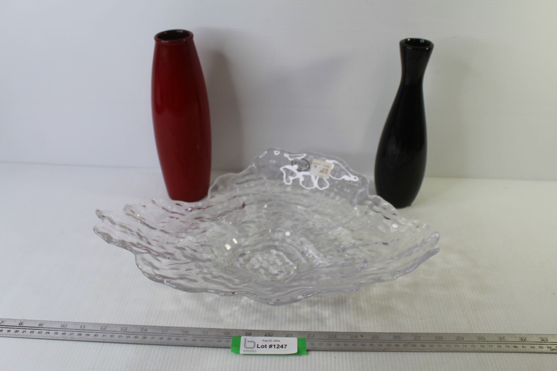 Abbott Art Glass Dish/Bowl - (2) Ceramic Vases