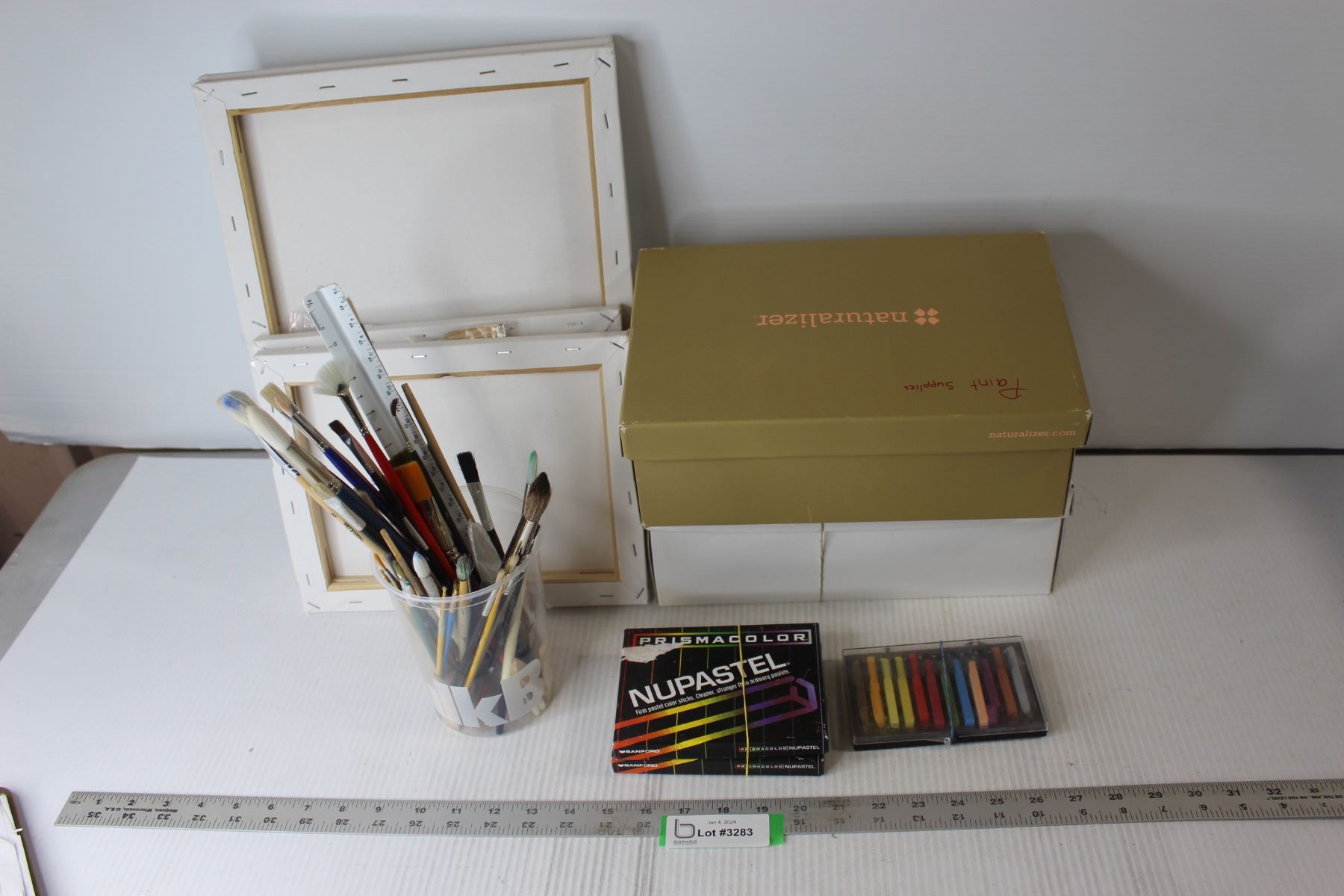 Acrylic Paints, Paint Brushes, Pastels, Blank Canvasses