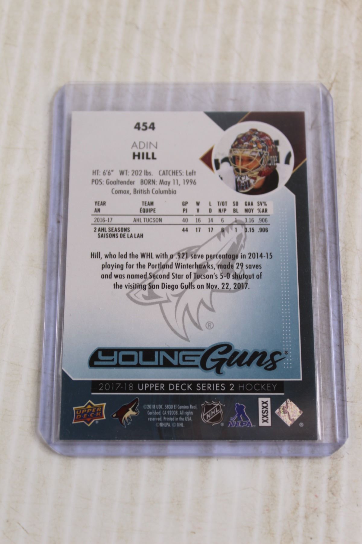 Adin Hill Young Guns Rookie Hockey Card