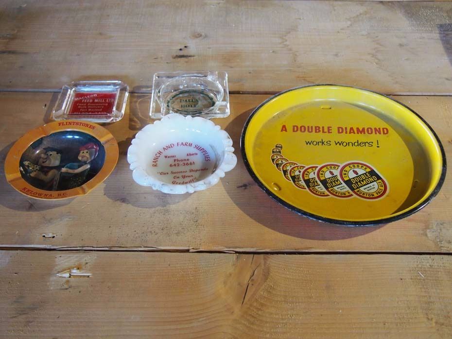 Advertising Ashtrays (4) & Advertising Tray (1)