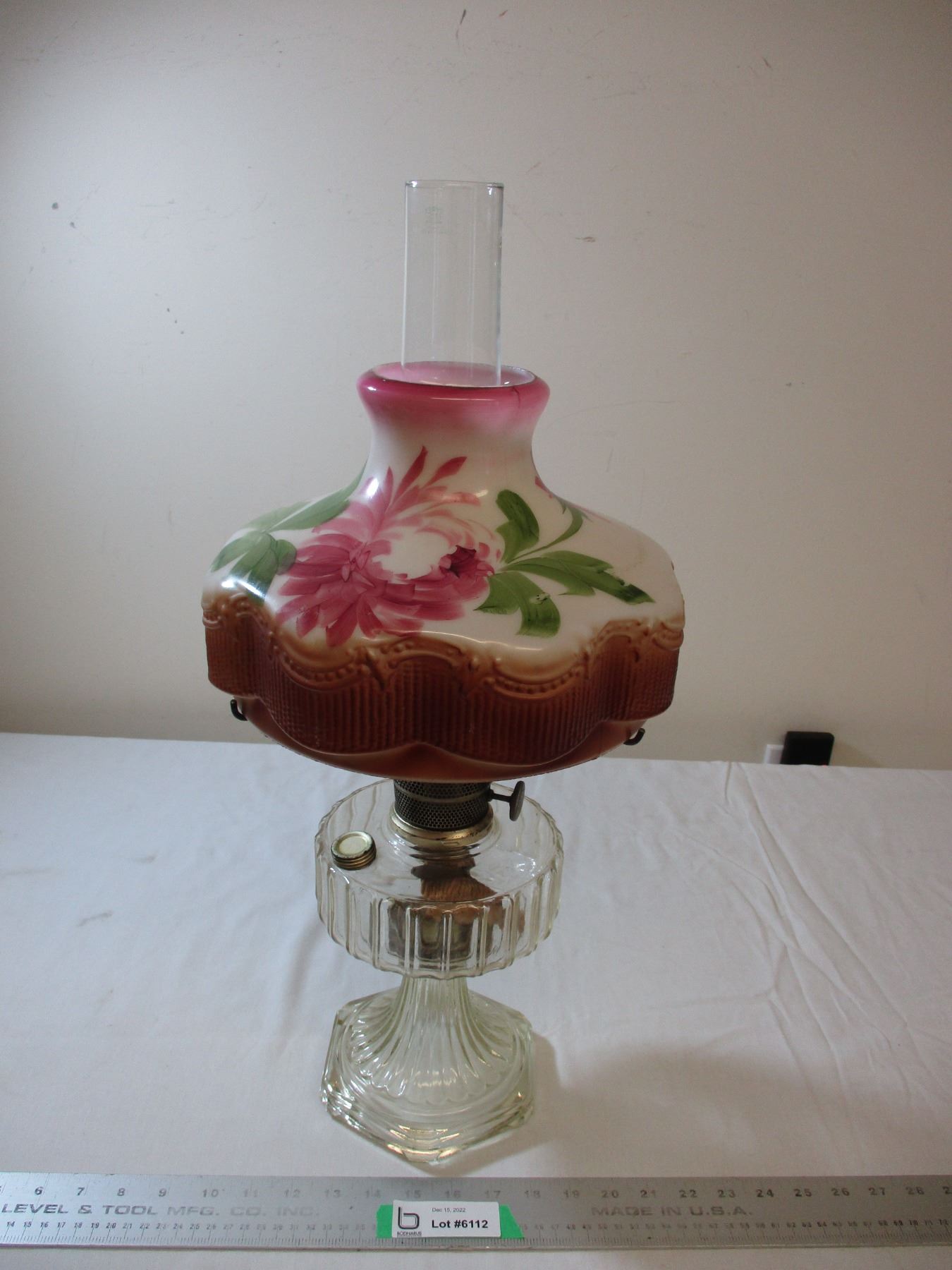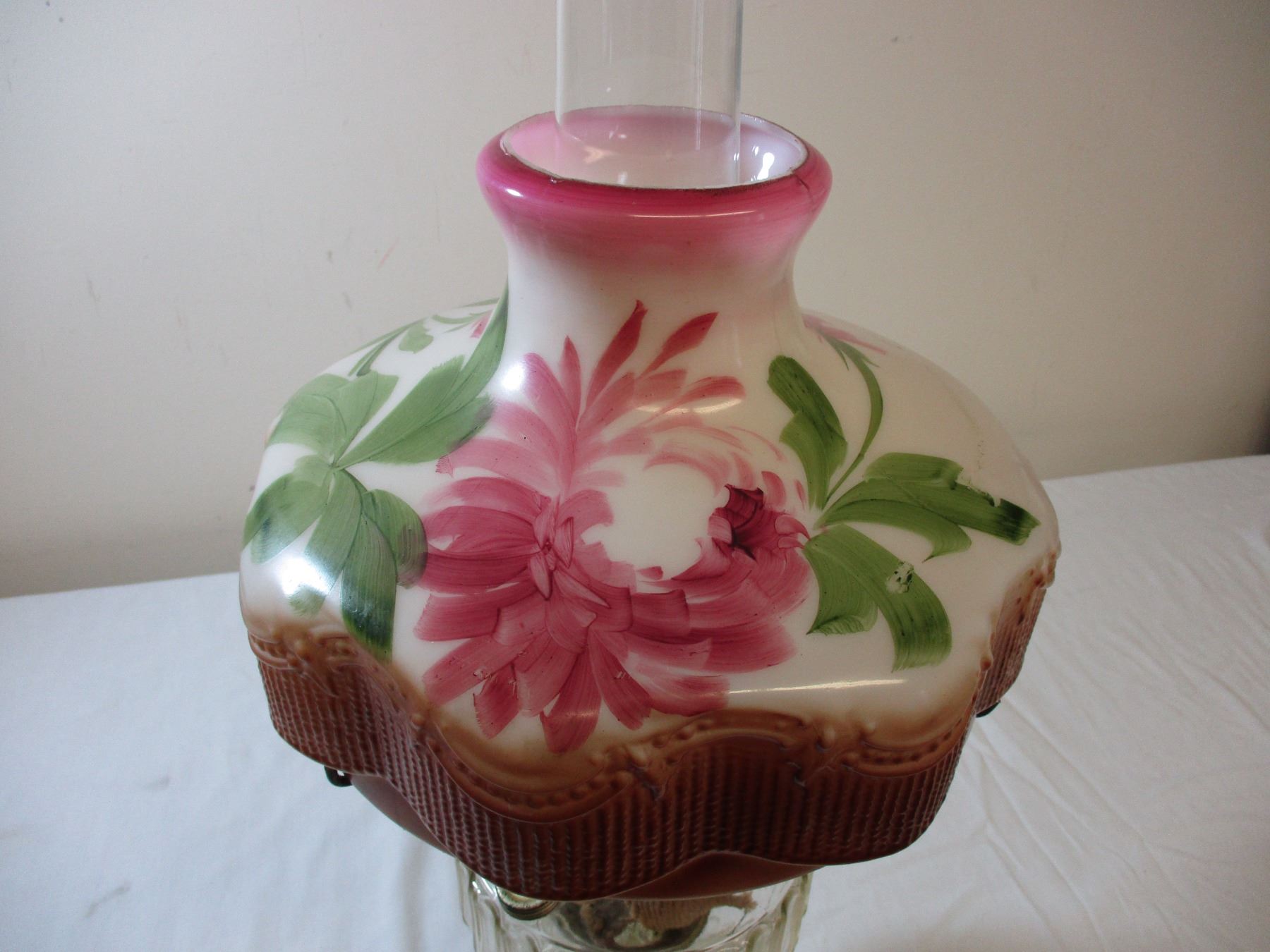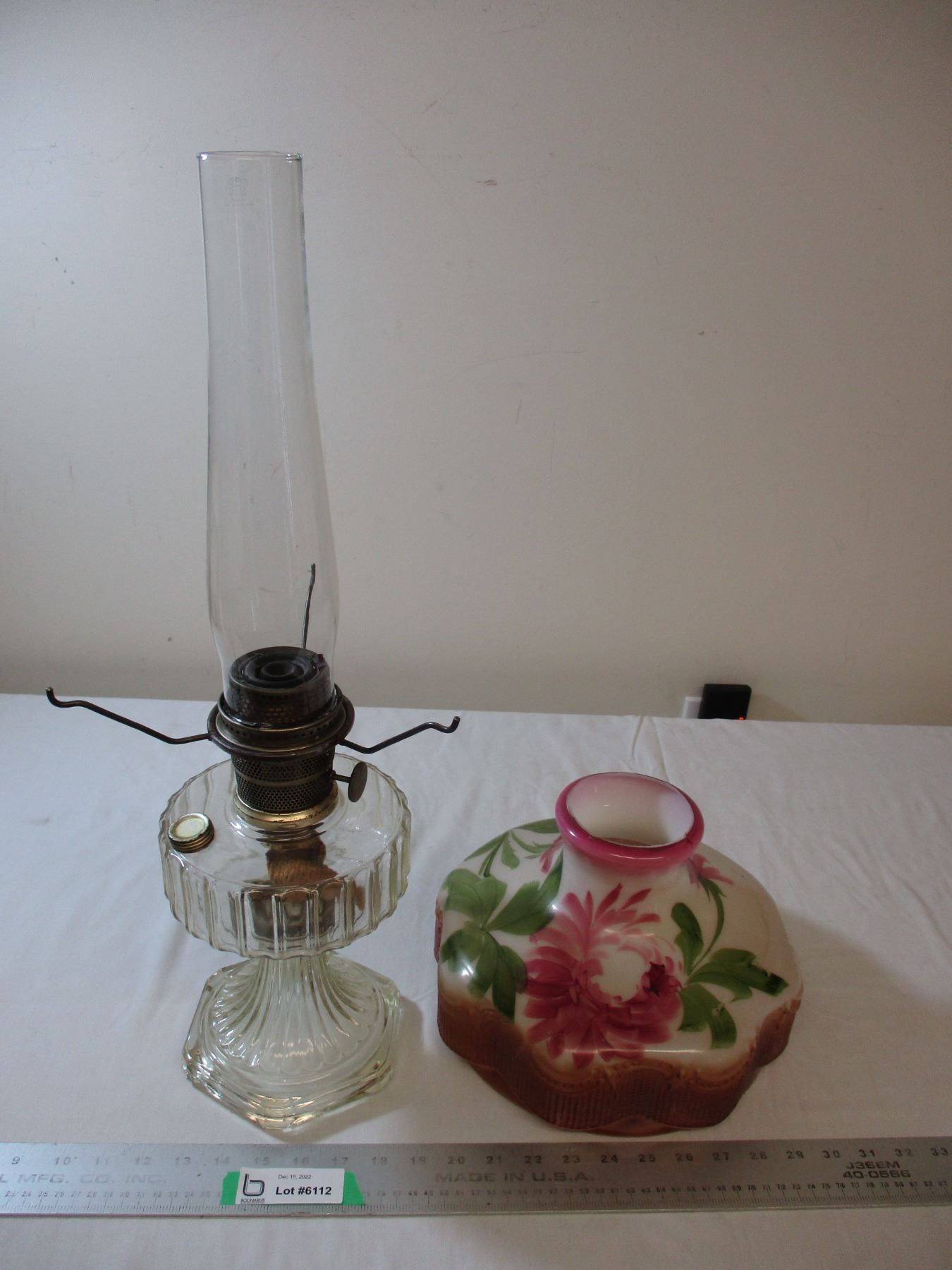 Aladdin oil lamp clear with hand painted shade - early 1900's - 24" tall