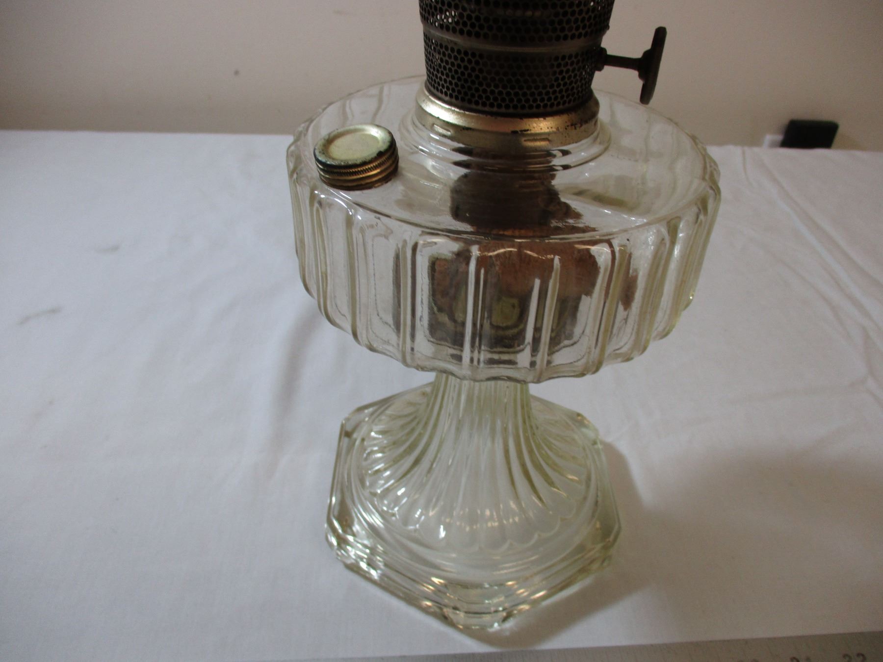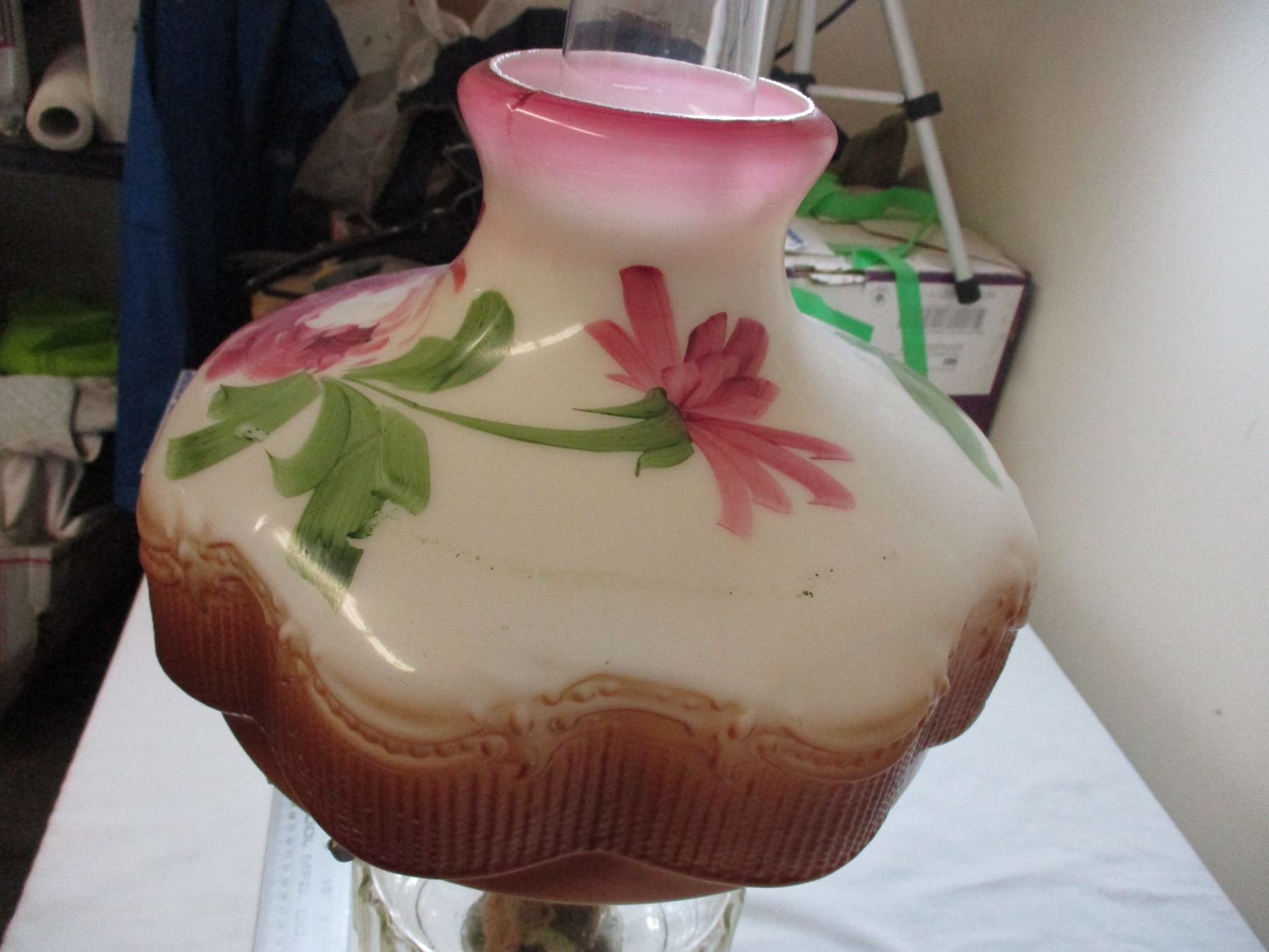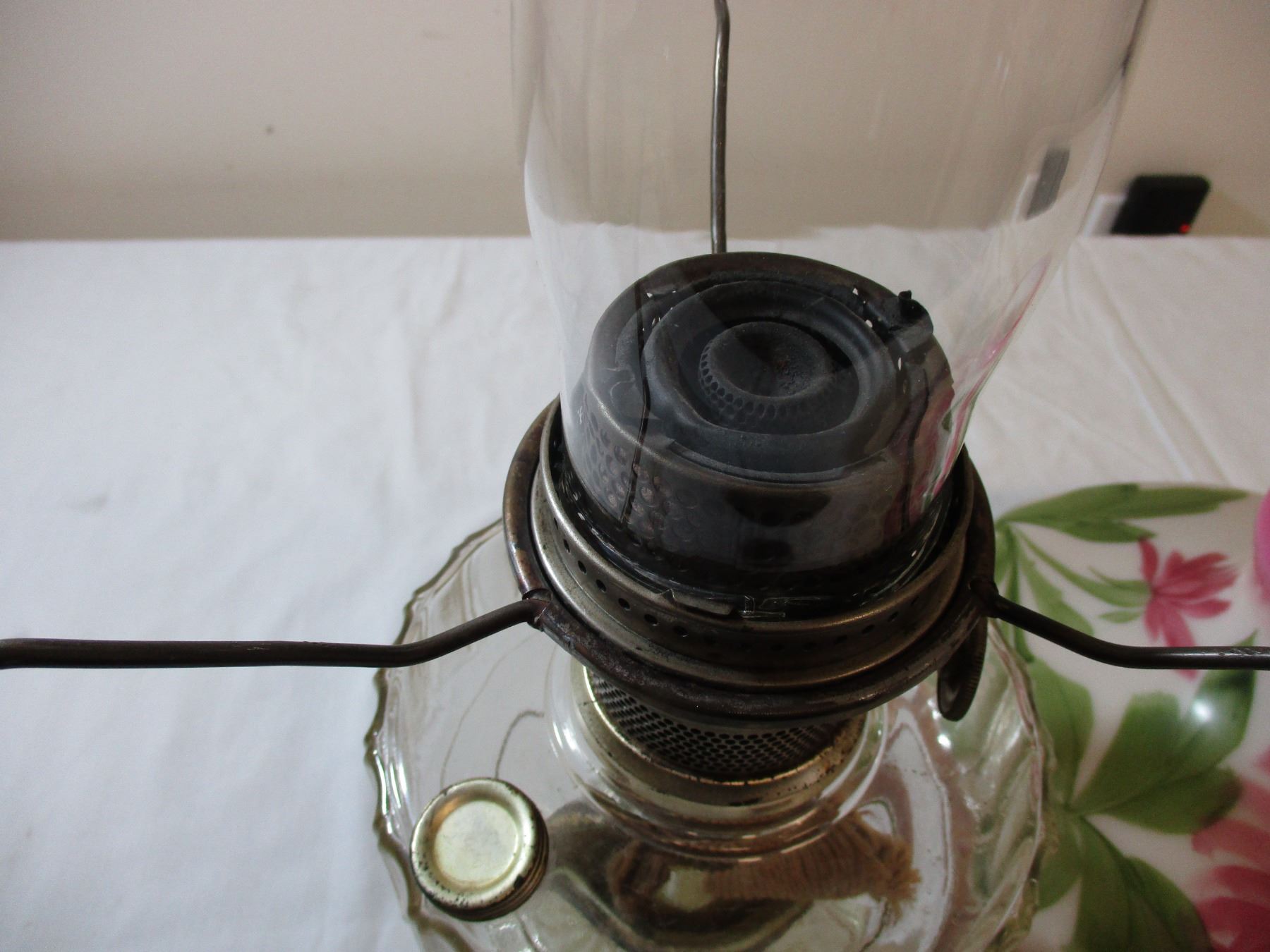 Aladdin oil lamp clear with hand painted shade - early 1900's - 24" tall