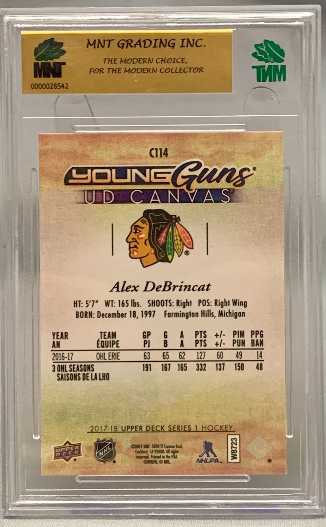 Alex DeBrincat Young Guns Canvas Graded Rookie Hockey Card