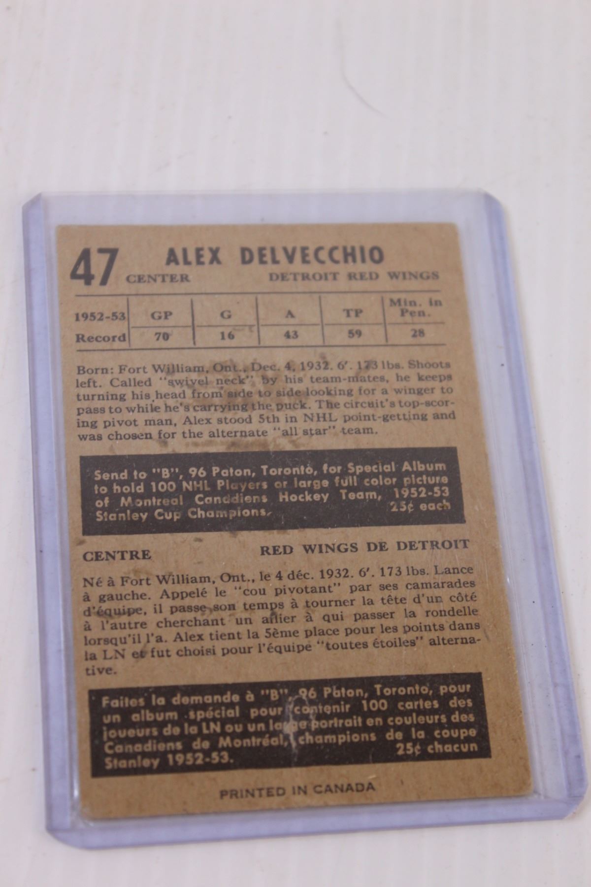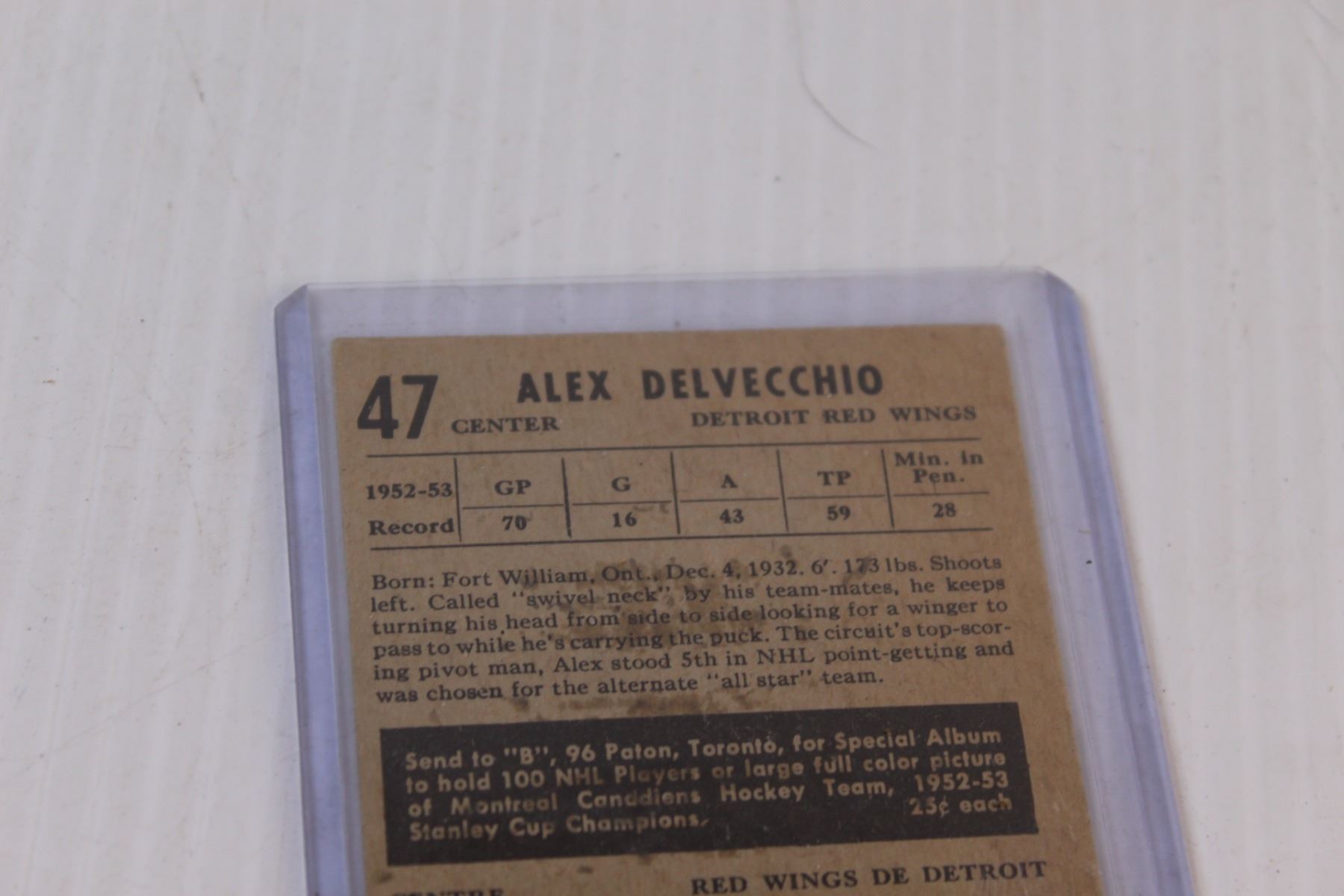 Alex Delvecchio 1953-54 Parkhurst Hockey Card
