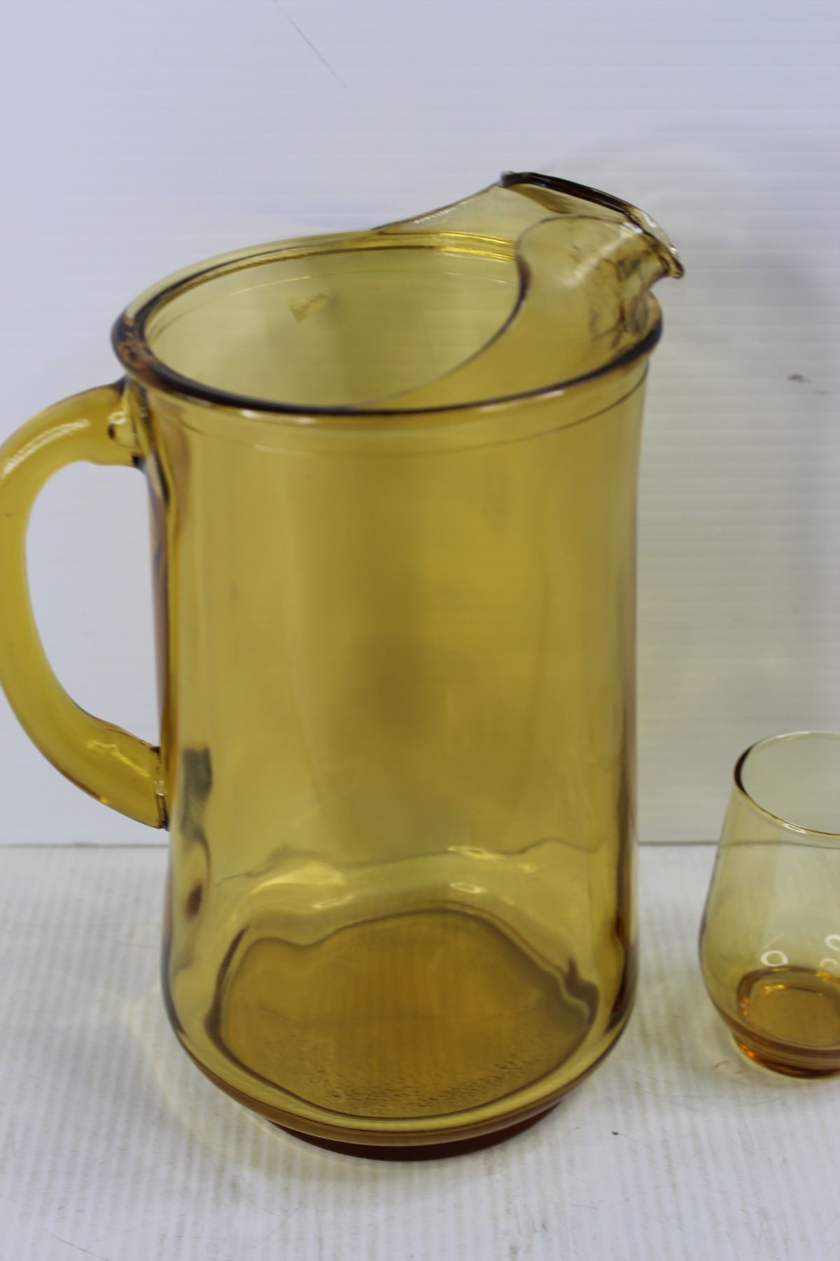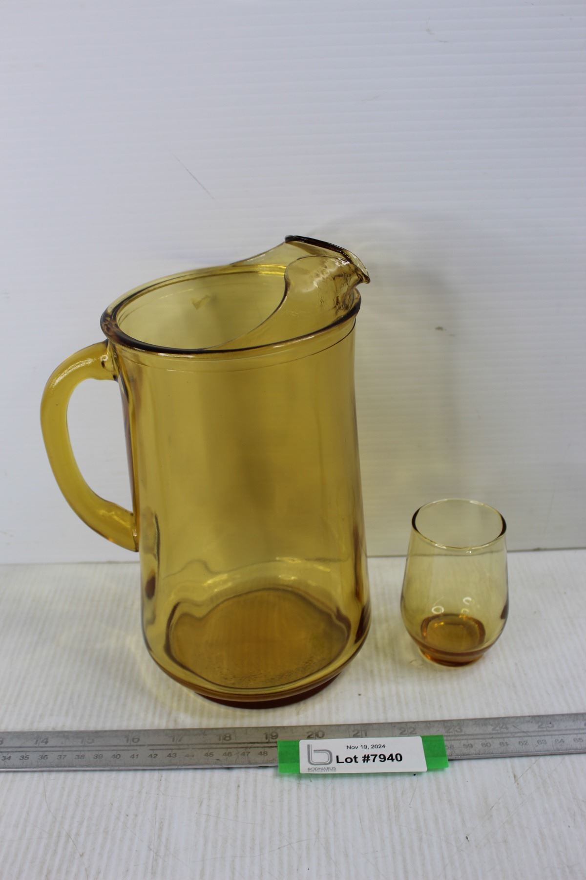 Amber Glass Picher, 9'' Tall w/ Matching Cup