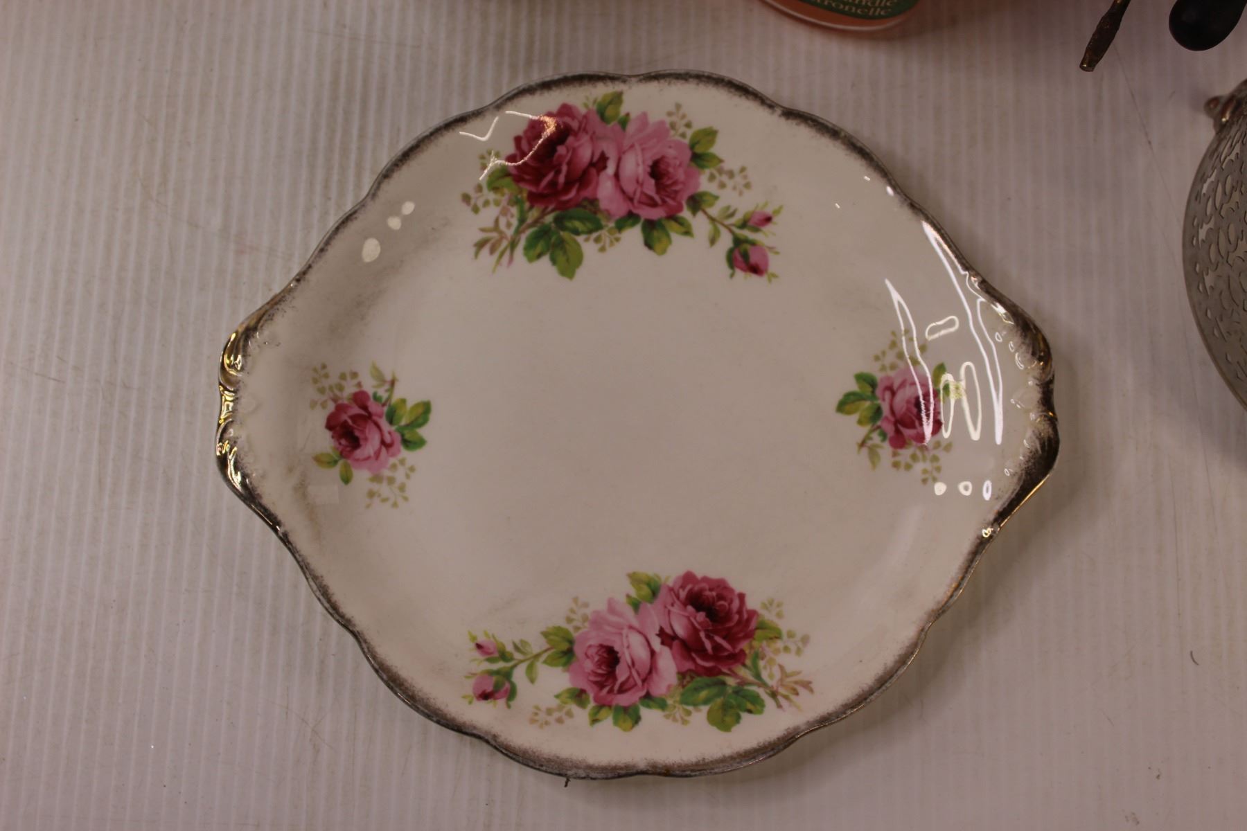 American Beauty Bone China Serving Platter, Wall Mount Planter, Plastic Basket Containing Lamp parts
