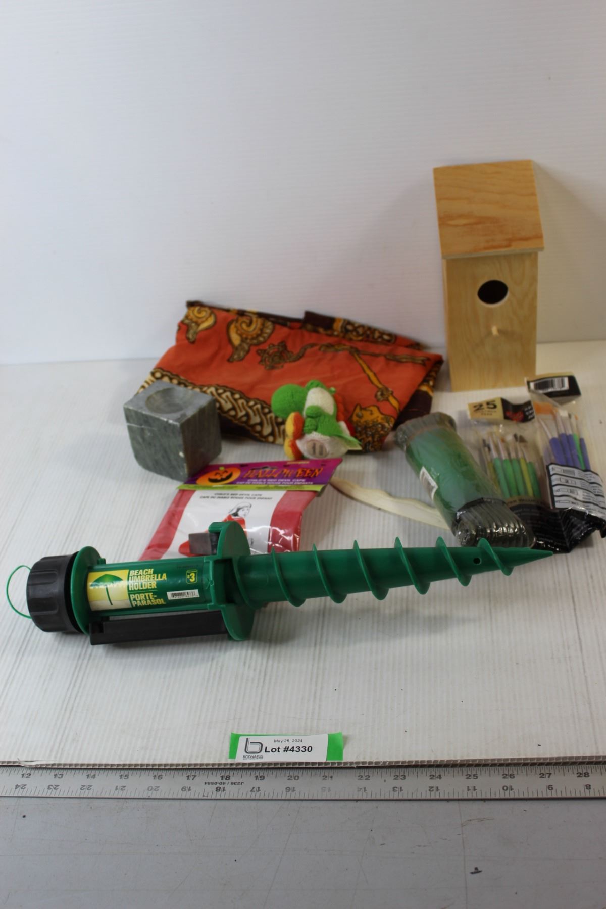 Amiibo Yoshi, Wall Tapestry, Paint Brushes, Wooden Bird House, Misc.