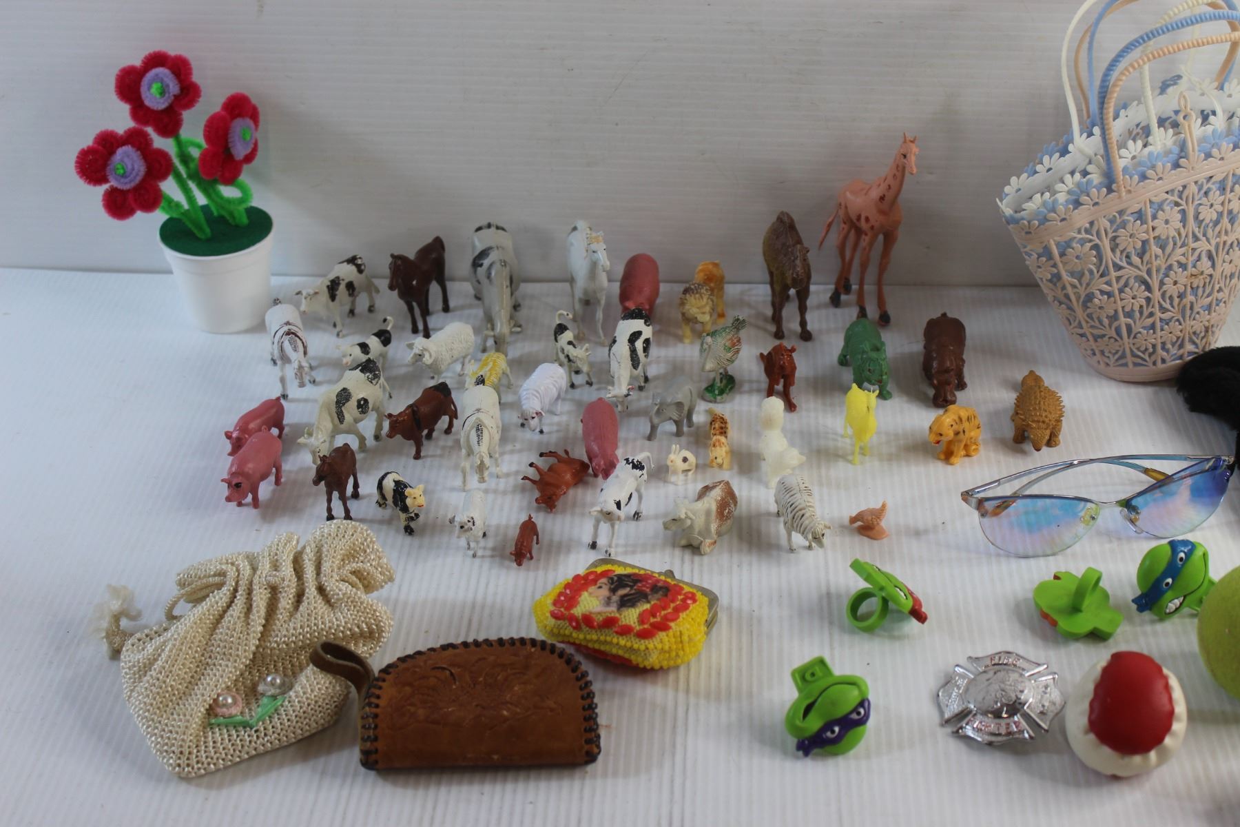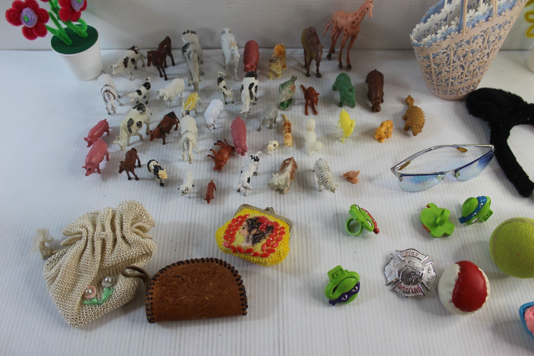 Animal and Livestock Ornaments, Baskets, Toy Plants, Coin Bags, Sunglasses and Misc