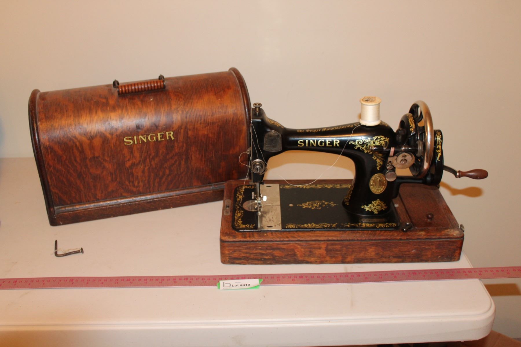 Antique 1920's Singer Sewing Machine w/Travel Box - Hand Crank (F2423539)