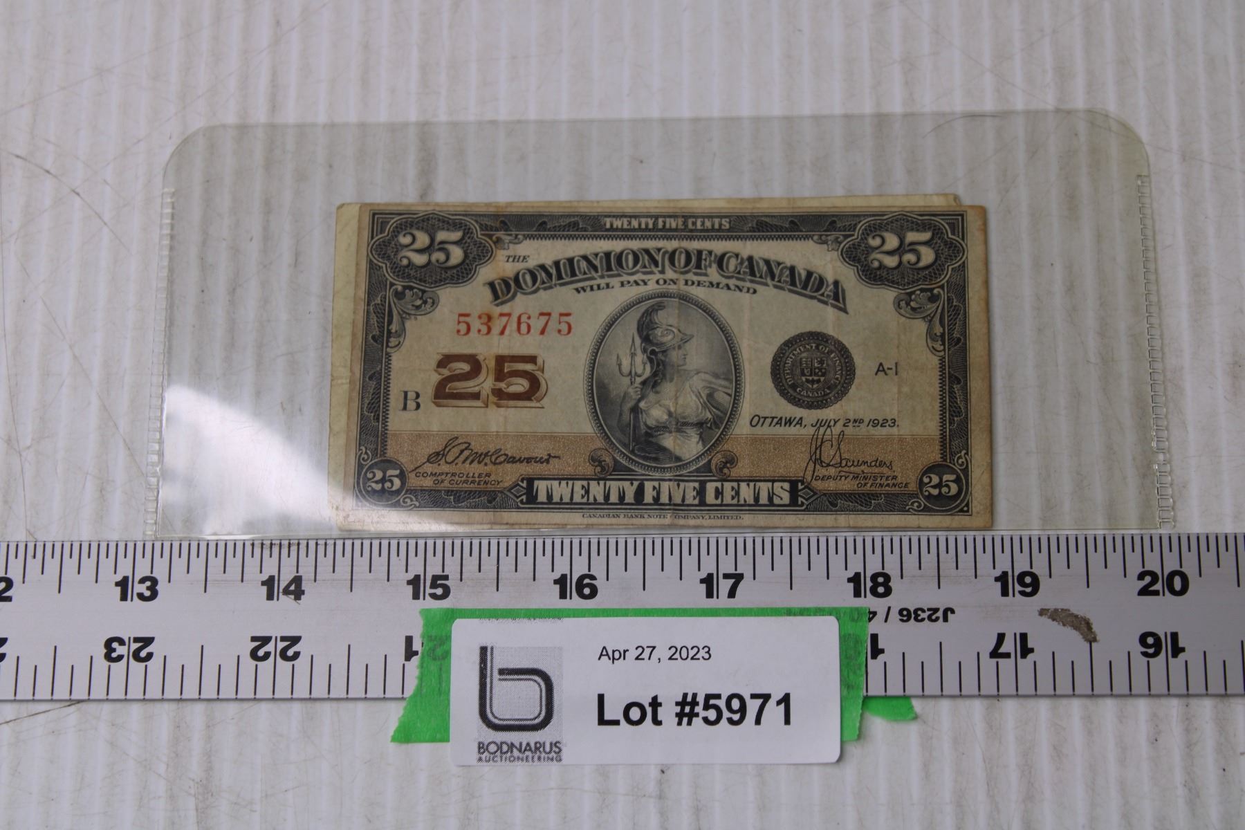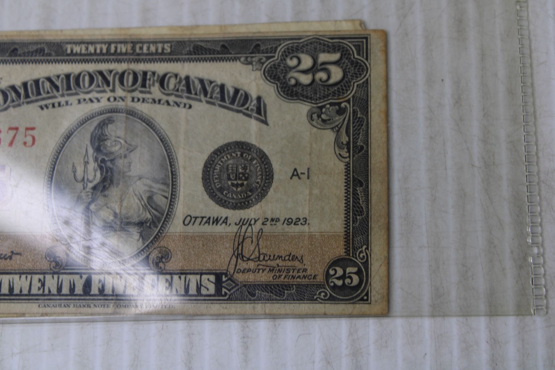 Antique Canadian Collectible 25-Cent Shin Plaster Bill - 1923