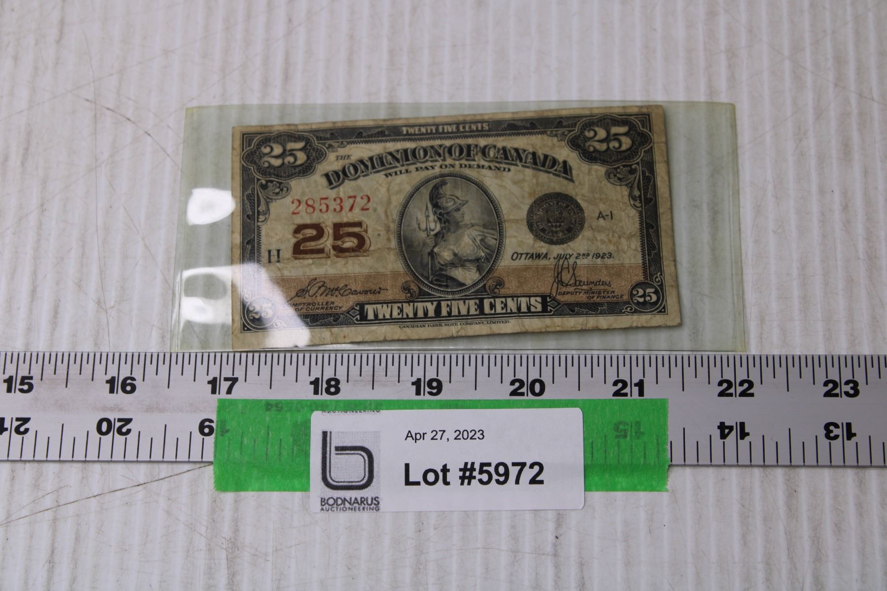 Antique Canadian Collectible 25-Cent Shin Plaster Bill - 1923